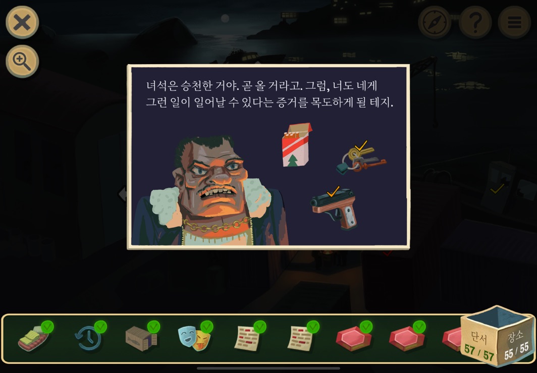 이번 에피소드의 경우에는 스틸사이드 창고와 뒤쪽에 보이는 배에서 일어난 두 개의 사건을 모두 풀어야 한다. 이번 포스팅에서는 창고와 부두에서 일어난 일을 그리고 다음 포스팅에서는 배에서 일어난 일을 풀어보자.