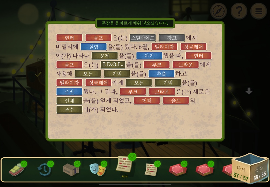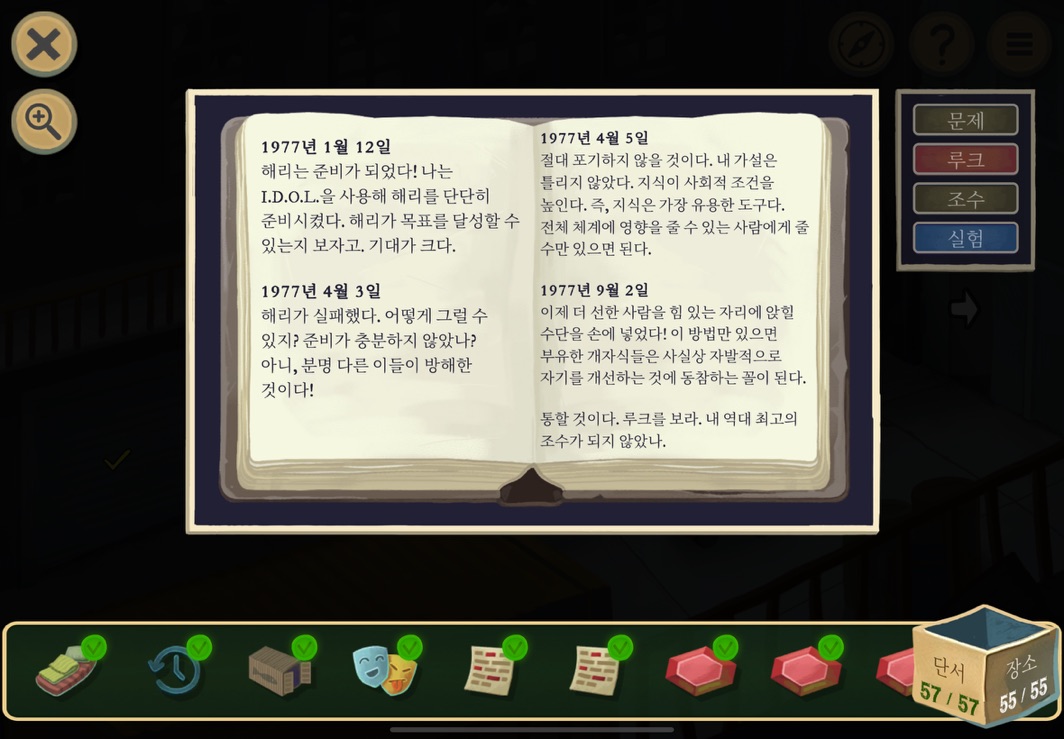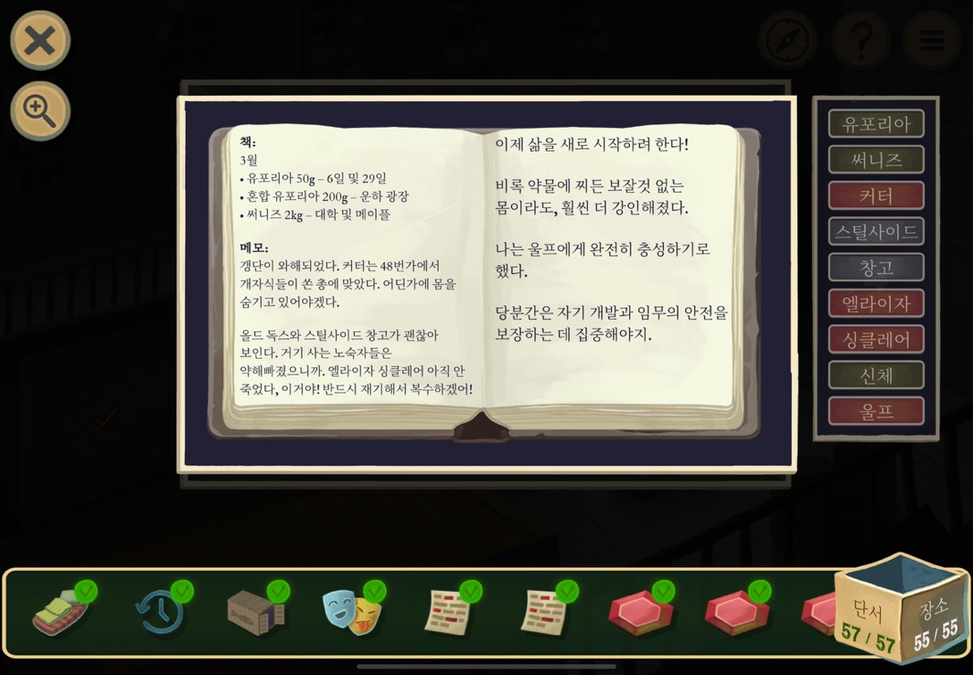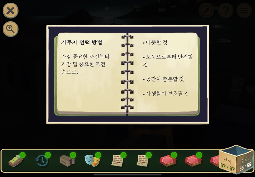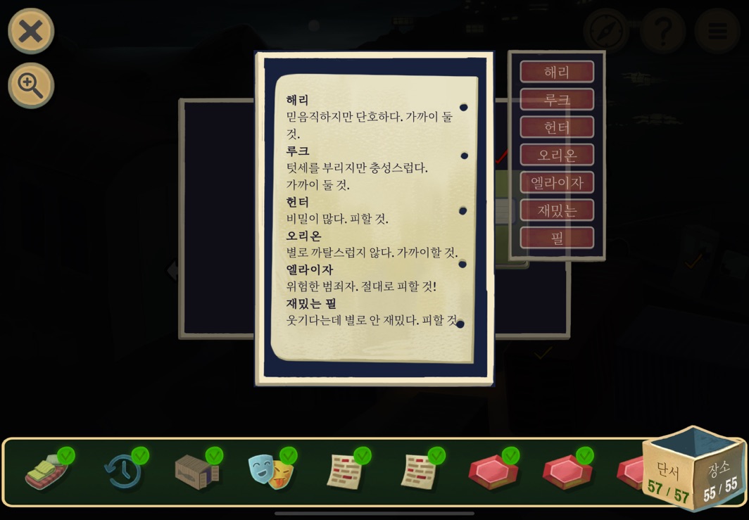 우선 공략이긴 하지만 태블릿, PC, 모바일마다 다르기도 하고 거기에 버전이 몇이냐에 따라서 또 뷰와 약간의 워딩이 다르기 때문에 공략을 볼 때 완전히 똑같지 않더라고 일단 뜻을 알고 가면 도움이 된다. 그리고 너무 많은 힌트 이용은 게임의 재미를 떨어뜨리니 조심하시길.