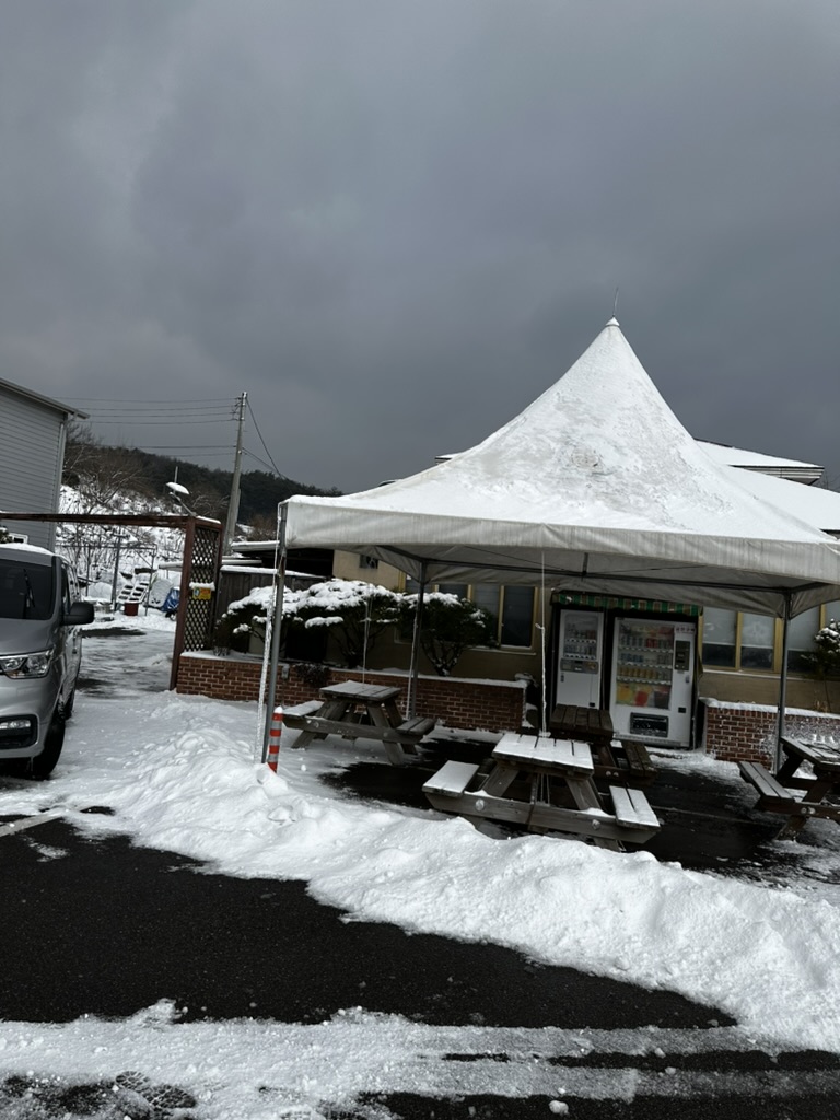 아예 매장이 따로 있기 때문에 주차장이 작은 규모가 아니다. 하지만 이상하리만큼 사람이 없었는데 눈도 치우지 않아서 꽤나 차량을 주차하기 쉽지는 않았다. 그리고 여기도 매장이 따로 있기는 하지만 앉아서 먹을 수 있는 곳은 없고 그저 구매만 하는 곳이기 때문에 먹고 갈 순 없다.