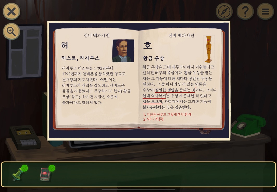 우선 공략이긴 하지만 태블릿, PC, 모바일마다 다르기도 하고 거기에 버전이 몇이냐에 따라서 또 뷰와 약간의 워딩이 다르기 때문에 공략을 볼 때 완전히 똑같지 않더라고 일단 뜻을 알고 가면 도움이 된다. 그리고 너무 많은 힌트 이용은 게임의 재미를 떨어뜨리니 조심하시길.