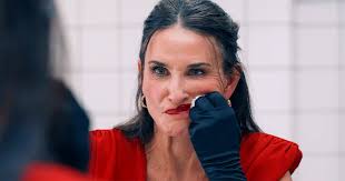 아무리 그래도 영화 서브스턴스의 주요한 요소는 여성의 성형(?)이다. 물론 이 영화에서 그려지는 성형이라는 것이 한 인간을 바꿔버릴 정도로 드라마틱하게 변하지만 결국 이뻐지고 젊어지기 위한 여성의 욕구 그리고 이를 기대하는 남성 위주의 사회를 보여주고 있다고 생각한다. 이 이야기는 현재 거의 모든 나라의 연예계뿐 아니라 일반인들에게도 적용이 되는 말로 노화를 막기 위해 그리고 더욱더 잘나 보이기 위해서 노력을 하는 것을 심심치 않게 볼 수 있다. 특히나 불법 약물에 손을 대면서 까지 말이다.