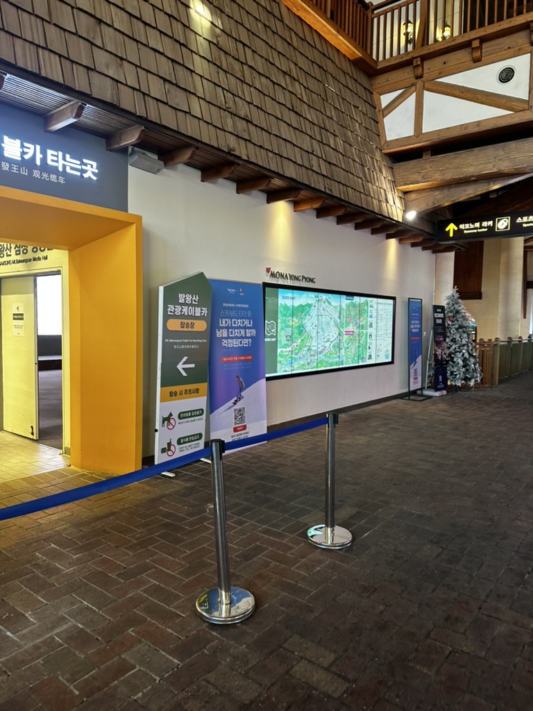 발왕산 케이블카가 있는 드래곤플라자는 아마도 용평 스키장에 메인 건물이라고 할 수 있다. 2층구조로 되어있어서 슬로프 쪽이 아닌 그린피아에서 접근을 한다면 바로 2층으로 떨어진다. 2층에는 발왕산 케이블카를 타는 곳이 있고 X5 인증기도 바로 들어가자마자 있기 때문에 스키를 바로 즐기기도 나쁘지 않다.