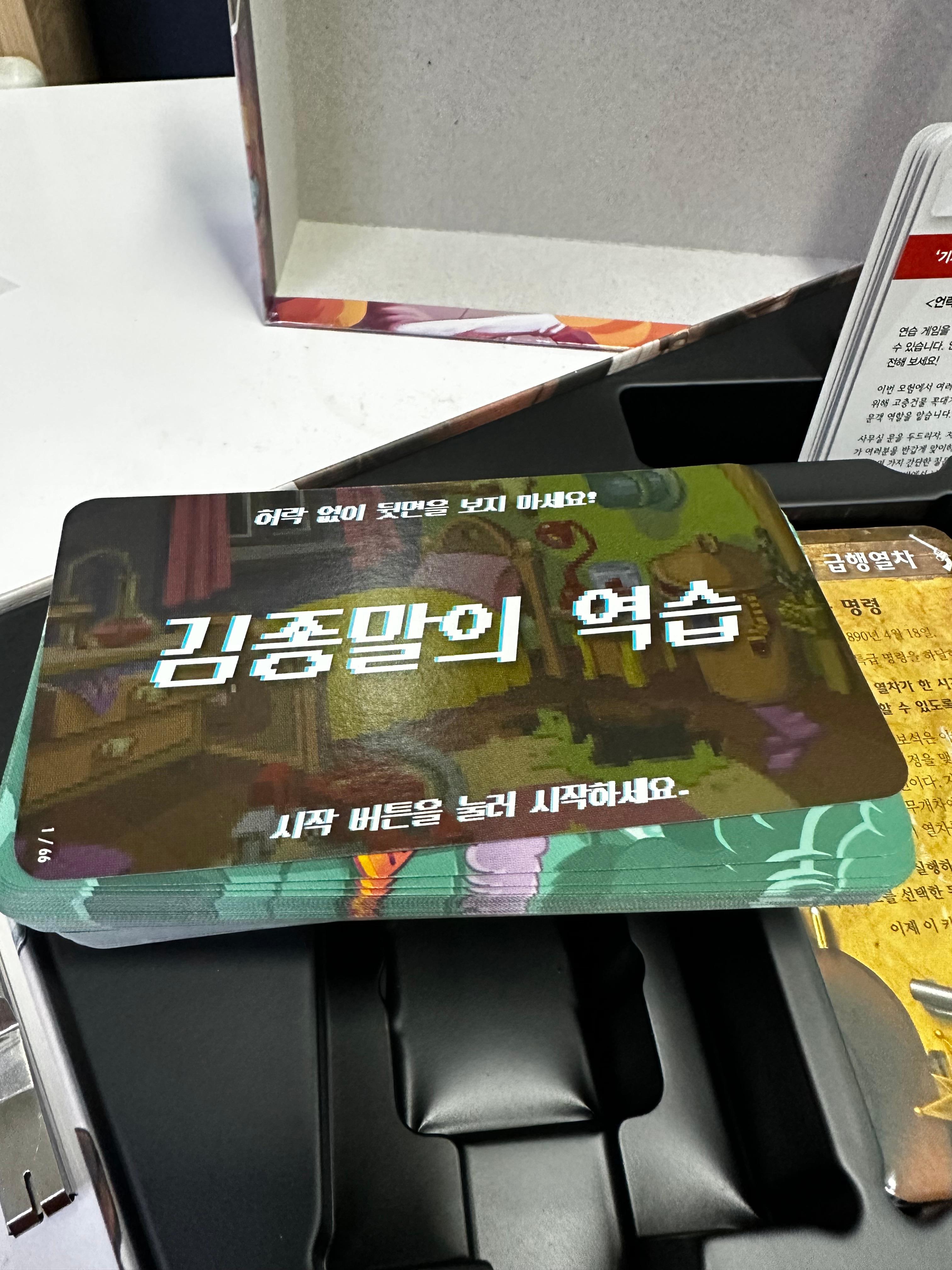 이 구성품에 대하여는 설명서에서는 정확한 설명이 나와있지는 않지만 게임을 진행하다 보면 자연스럽게 알게 됨으로 그렇게 크게 상관하지 않아도 된다. 그리고 시나리오의 3개는 가장 처음이 김종말의 역습인데 가장 쉬운 난이도에도 불구하고 가장 많은 분량을 가지고 있기 때문에 조금 특이하다고 할 수 있다. 김종말 박사의 시나리오들은 대부분이 방을 탐색을 하는 부분이 많기 때문에 그만큼 아이템이 많고 조합도 다양하기 때문에 이런 분량 차이가 있는 것이라고 볼 수 있다.