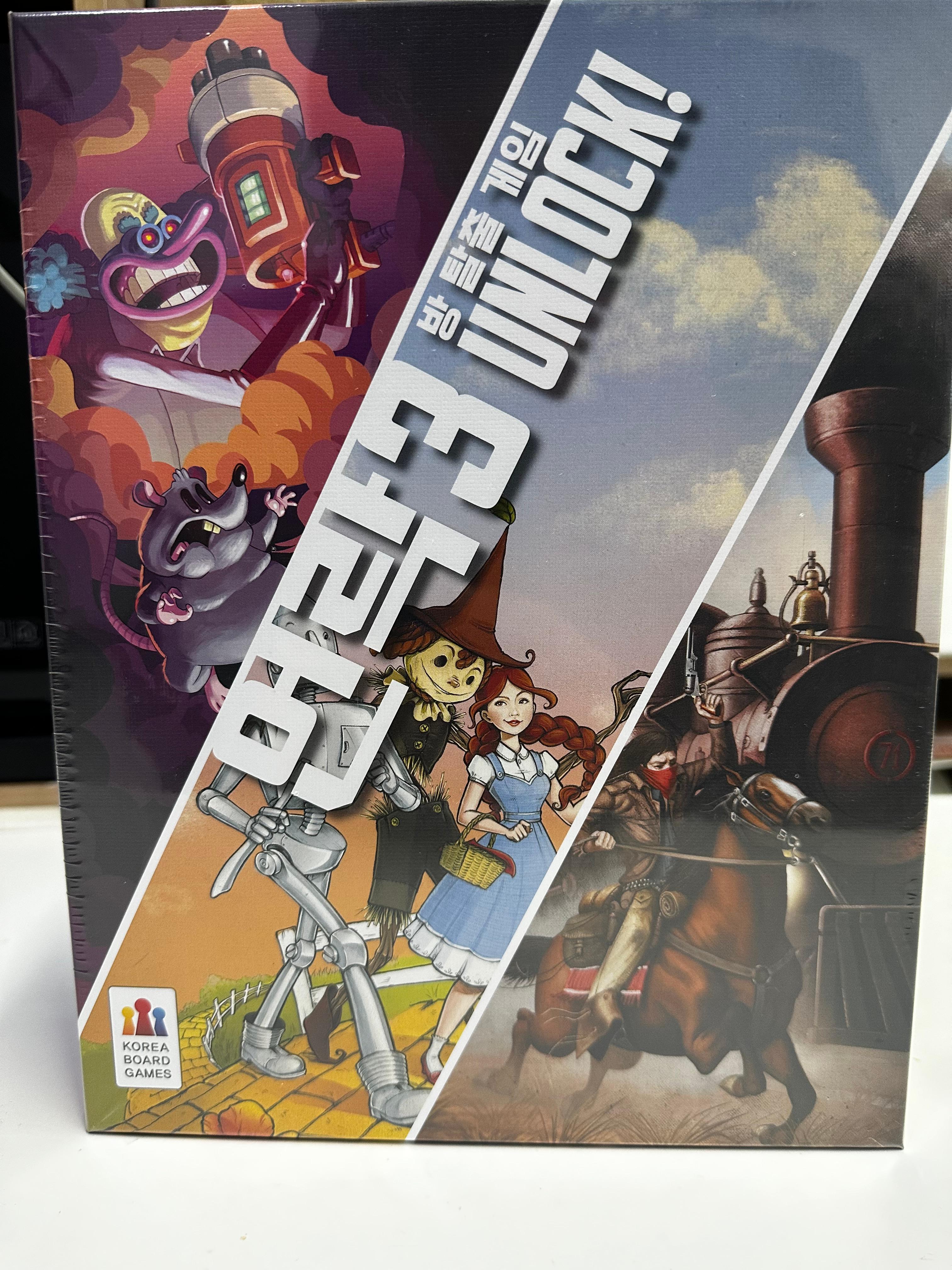 이런 게임을 하다보면 이 언락은 조금 심심하게 느껴질 수도 있다. 하지만 그래도 방탈출 보드게임이라고 하면 언락! 이 아직까지는 꽤나 좋은 평가를 유지하고 있기도 하고 정통 방탈출 게임이라고 할 수 있다. 거기에 1,2편에 이어 2017년에 나온 3편은 Unlock!: Secret Adventures라는 부제를 가지고 있고 그것에 맞게 오즈의 마법사와 서부극 테마를 가진 시나리오를 가지고 있다. 그리고 이 언락 시리즈의 터줏대감인 김종말 시나리오를 하나 가지고 있다.