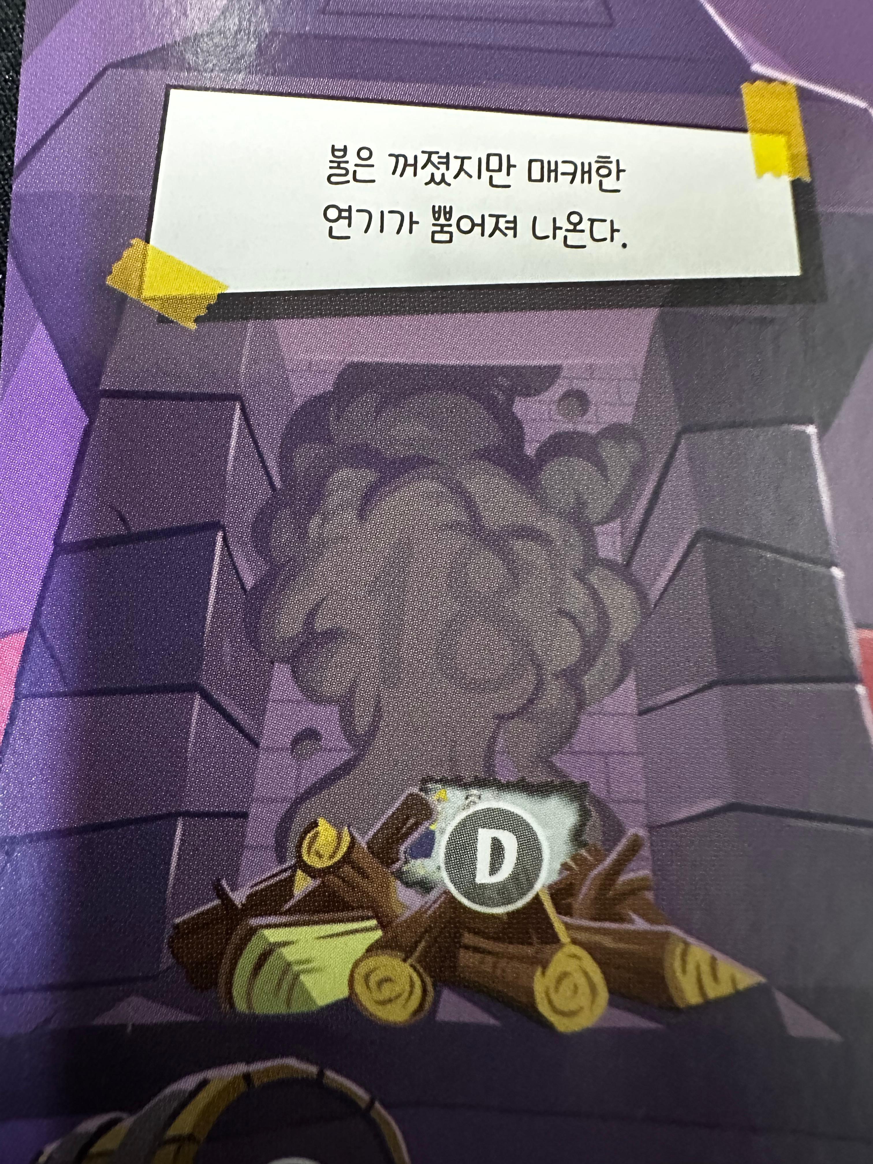 여기까지 왔으면 새로운 장소가 나오지 않는 이상 막히게 될 것이다. 이럴 때는 이전의 카드들을 유심히 살펴봐야 한다. 우선 불을 끄고 난 화로를 살펴보면 연기에 숫자 18이 쓰여 있는 것을 확인할 수 있다.