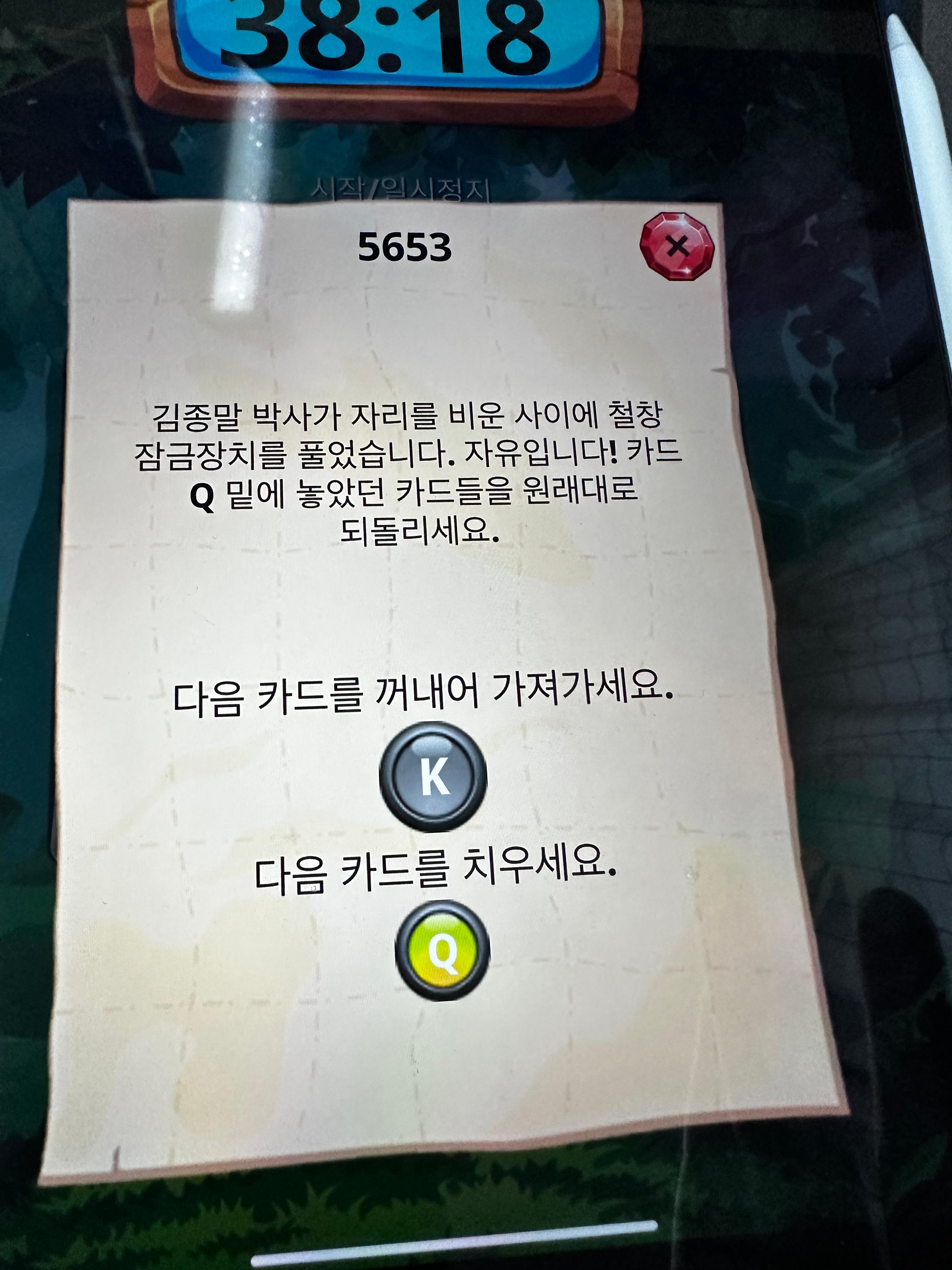 콜록머신을 막으면 김종말 박사가 나오고 우리는 잡히게 된다. 그리고 모든 카드를 모아서 Q카드 밑에 넣고 Q카드에서 벗어나기 전까지 사용을 하지 못한다.