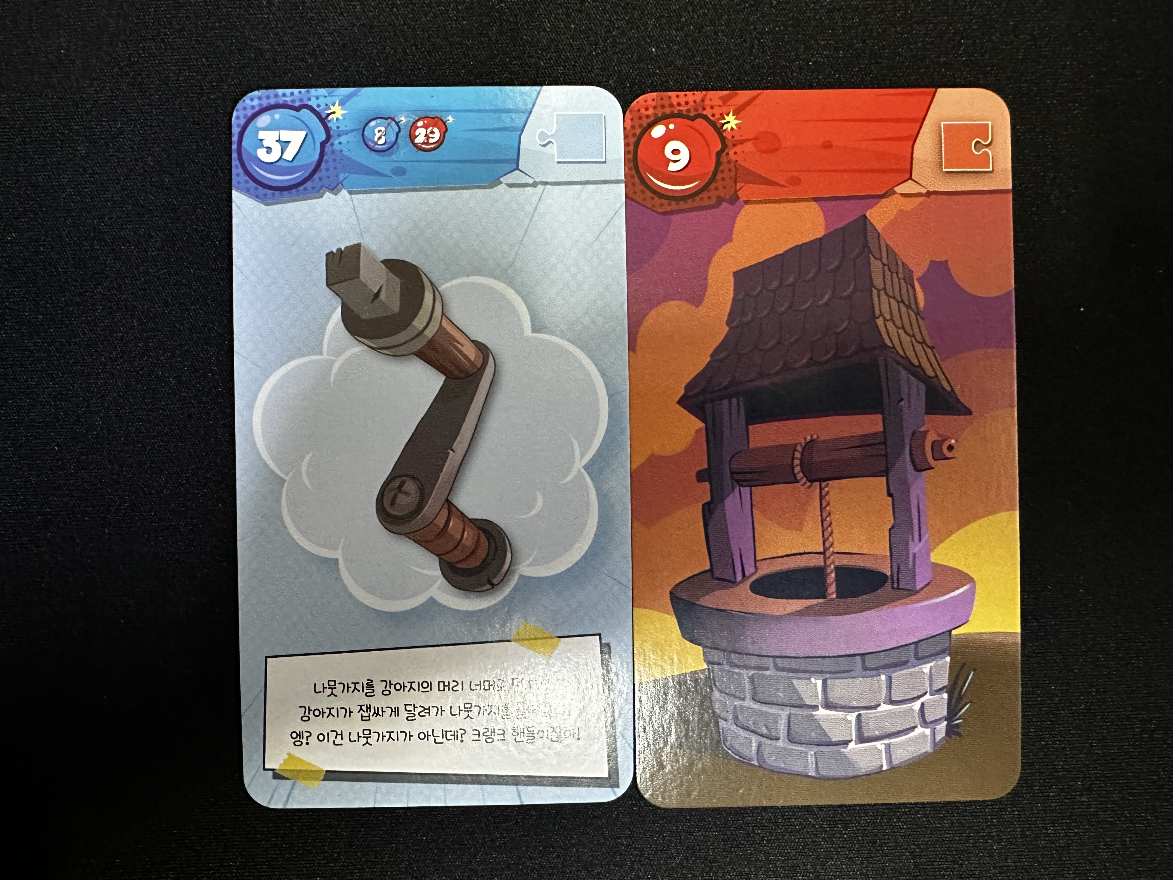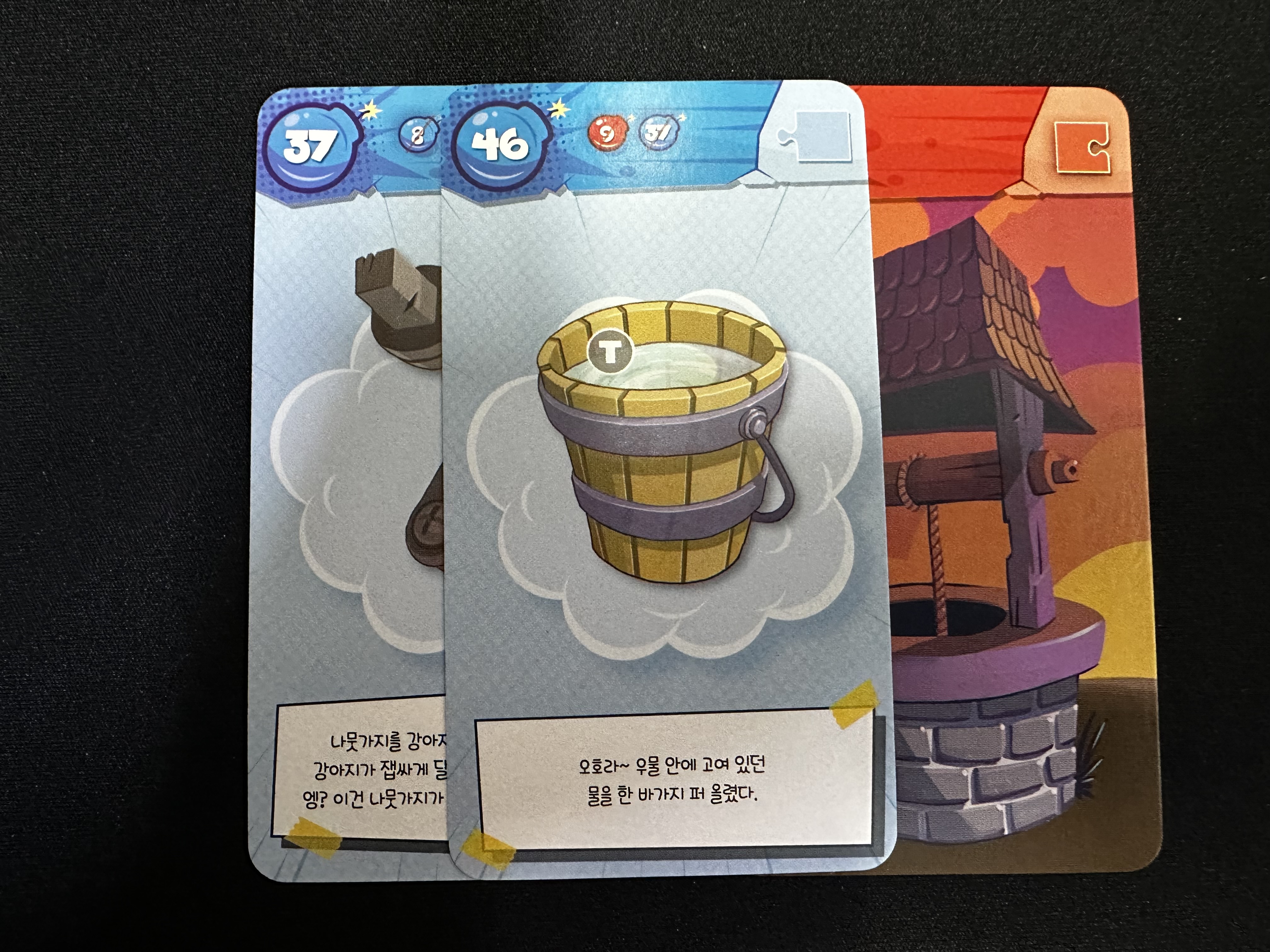 2) 핸들이 없는 우물(9번)에 핸들(37번)을 조합해 물이든 양동이(46번)를 얻는다.