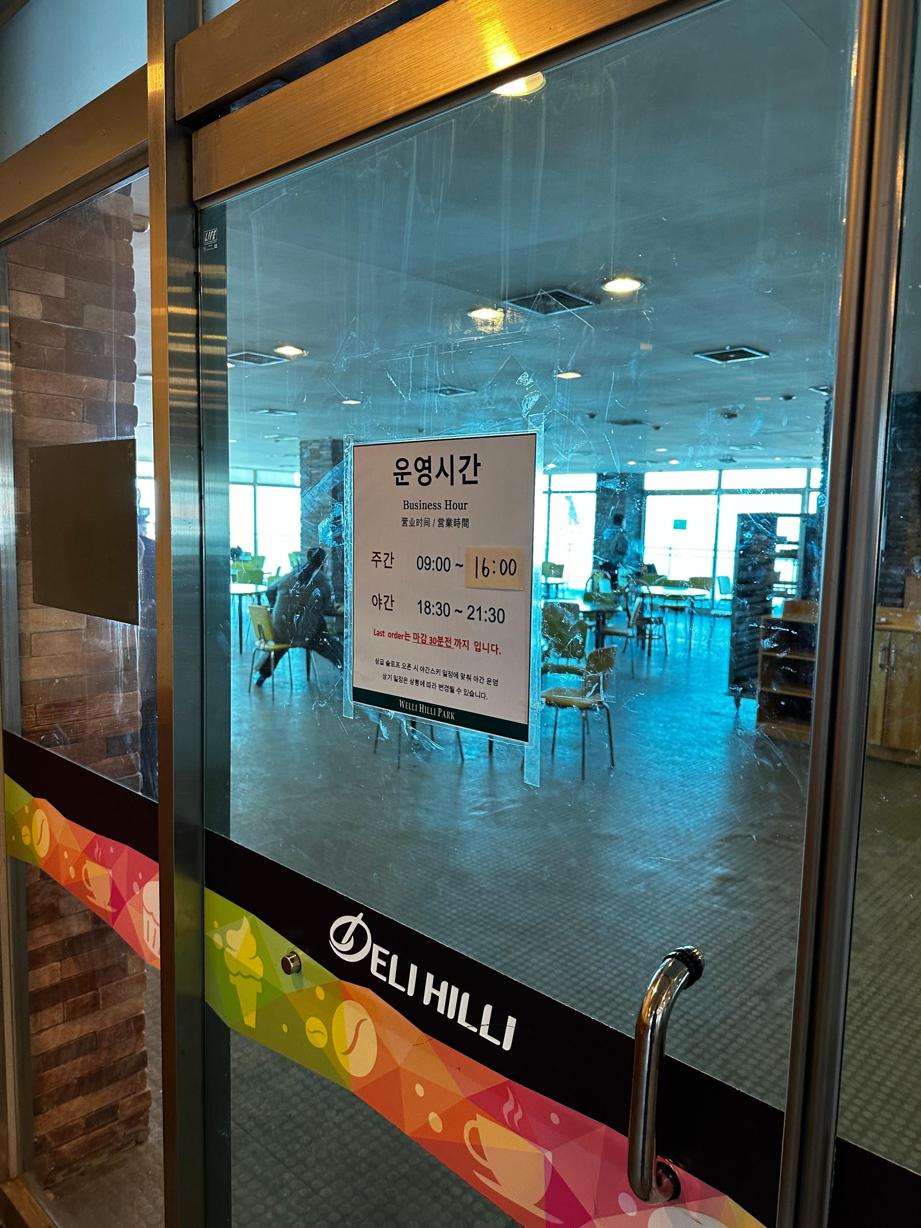정상에 올라가면 여전히 카페테리아를 운영 중이긴 했다. 식사보다는 간식을 먹을 수 있는 곳이긴 하지만 돈가스나 우동, 국밥 등 식사 메뉴도 있기는 했다. 점심시간임에도 사람들이 붐비지 않았는데 그 이유는 스타익스프레스 슬로프가 열지 않았기 때문에 스키장에 50% 이상을 차지하는 중, 초급자 사람들이 없었기 때문이라고 할 수 있다.