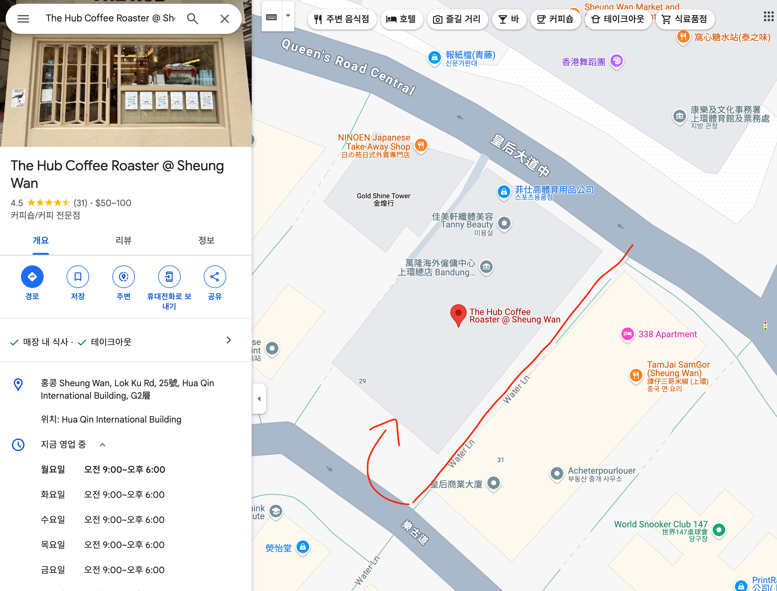 이 매장은 대로변에 있지 않다는 함정이 있다. 대로변에서 접근을 한다면 건물의 뒤쪽으로 가야 매장의 입구가 있다. 물론 건물을 가로질러서 갈 수 있는 것 같지만 엘리베이터를 타고 올라가야 하기 때문에 옆쪽에 있는 계단골목으로 지나가는 것이 훨씬 편하다. 홍콩이 일반적인 매장은 괜찮을 수 있으나 조금만 들어가도 건물 안에 있는 매장을 찾기가 정말 어렵다. 간판도 없고 디렉터리에도 나와있지 않는 경우가 종종 있기 때문이다.