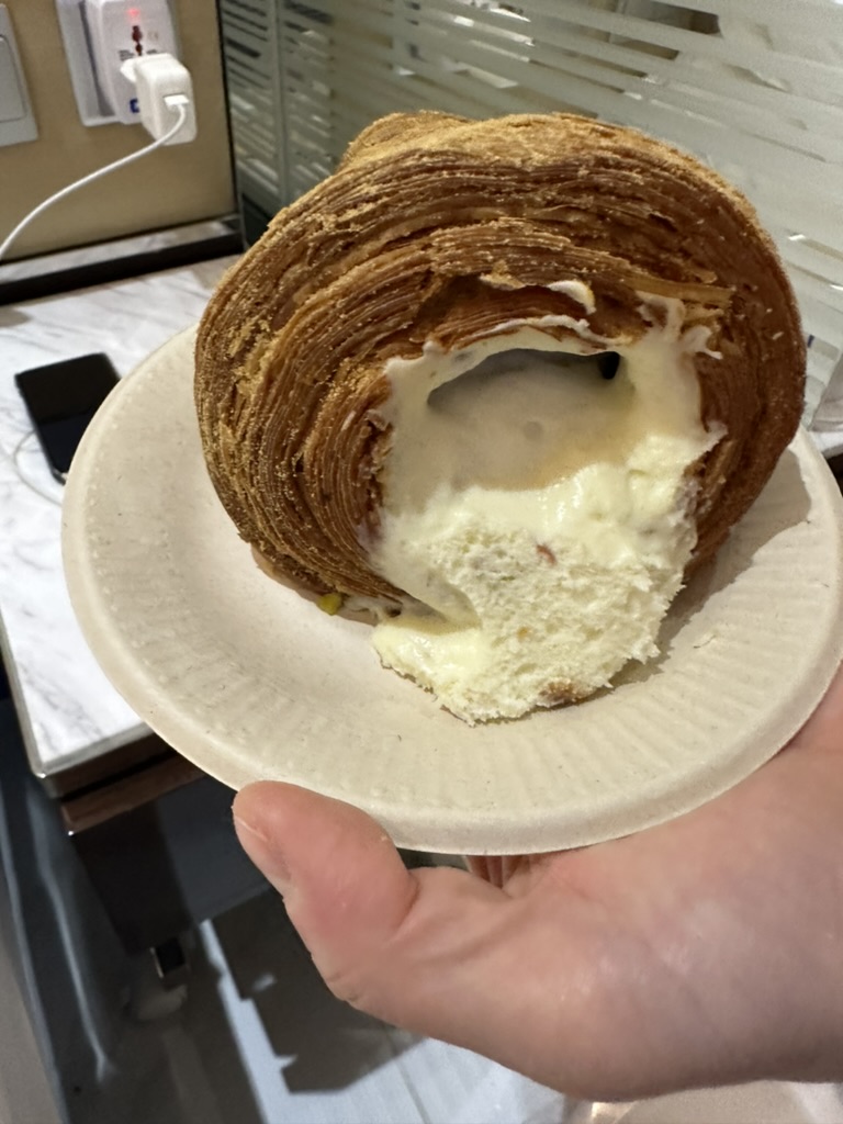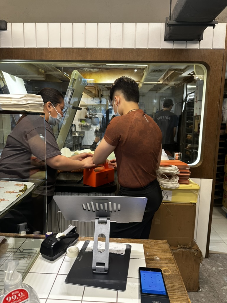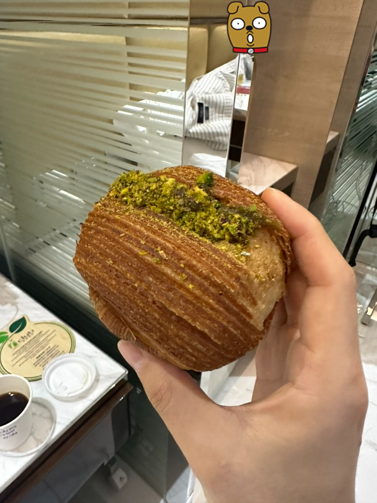여기서 엄청 고민을 많이 했다. 이 정도 가격이면 에그타르트 6개를 하나 더 살 수 있는 가격인데 빵 2개로 퉁쳐야 하는 것인가? ㅋㅋ 그래도 여기서 하나 사서 먹어보는 것이 좋다고 판단해서 모치가 들어간 크림 크로와상과 피스타치오 크림이 들어간 페이스트리를 구매를 했다. 그랬더니... 2개에 135달러로 거의 3만 원에 다다르는 가격이었다. 이곳은 그래도 현금을 받지 않아서 카드로만 결제가 가능한 집이다. 아마도 홍콩에서 현금이 안 되는 유일한 집이었던 것 같다.