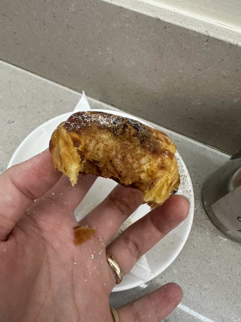 시나몬과 녹은 설탕이 만나 설탕이 녹아있는 호떡과 계란 커스터드를 같이 먹는 느낌이 든다. 마치 흑당시럽과 커스터드를 호떡에 같이 넣어서 먹는 느낌이랄까? 조금 버터의 과함이 녹아있지만 그래도 맛이 아주 다채롭고 커스터드와 설탕의 맛을 조화시켜서 새로운 맛을 만들어 낸 느낌이었다.