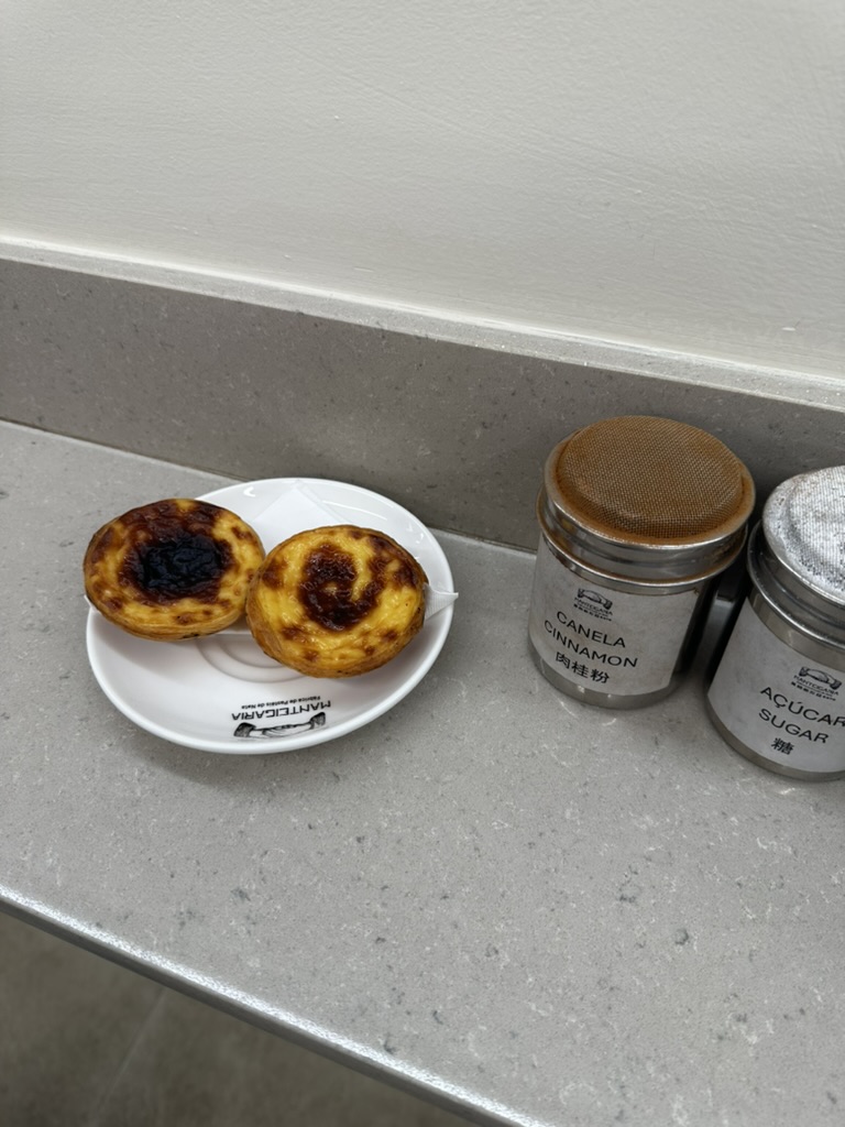 사실 기대가 그렇게 크지 않았지만 한입 먹어보고 와 이거 진짜 맛있는데라고 할 정도로 탄성이 나왔다. 내가 디저트를 먹고 이거 맛있다고 이야기하는 경우가 잘 없는데 이 에그타르트는 아주 마음에 들었다. 그리고 시나몬과 슈가파우더의 조합이 아주 좋았기 때문에 그 시너지가 더 난 것 같다.
