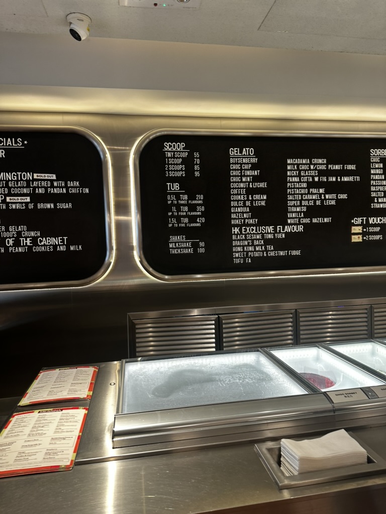 홍콩이 정말 젤라토가 유행이구나라고 느낀 것이 이탈리아에서 볼 수 있는 브랜드가 이 홍콩에 들어와 있다는 사실이었다. 이 메시나가 그런 브랜드 중에 하나인데 그래도 홍콩 식으로 맛을 여러 가지를 가지고 있다고 할 수 있다. 그리고 이탈리아에서 맛볼 수 있는 오렌지류의 칵테일인 스프리츠의 맛을 맛볼 수 있는 가게라고 할 수 있다. 다만... 가격이 유럽을 뛰어넘는 문제가 있었다.