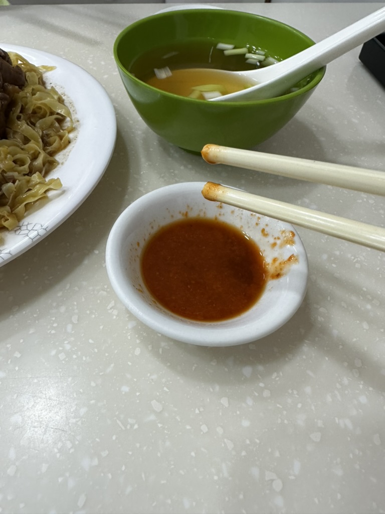 고기는 완전히 부서지지 않는 아주 적당히 삶아진 고기여서 아주 적절하다고 할 수 있다. 그리고 만일 원한다면 여기에 소스를 찍어먹으면 된다. 여기에 식초와 중국식 핫소스가 있어서 같이 뿌려먹으면 매운맛까지도 잡을 수 있기 때문에 아주 맛이 좋다. 한국을 제외한 중국, 일본에서는 만두나 완툰을 간장이 아닌 식초를 뿌려먹는데 여기도 마찬가지로 식초가 기본으로 있다. 그래도 여기는 라유가 있어서 라유를 뿌려 먹어도 꽤나 맛이 좋다.