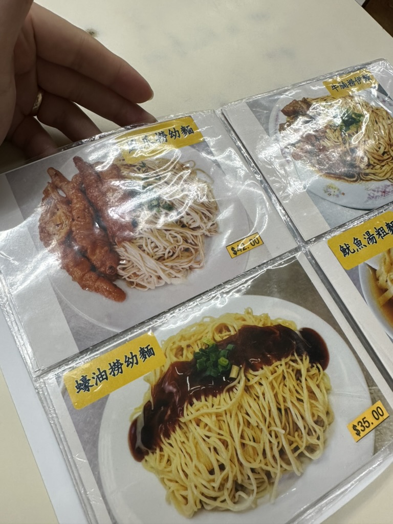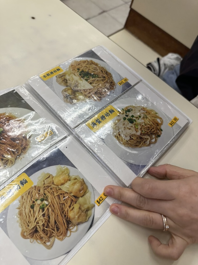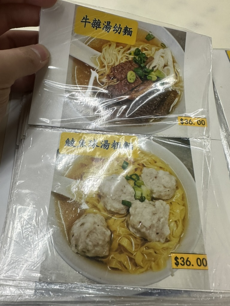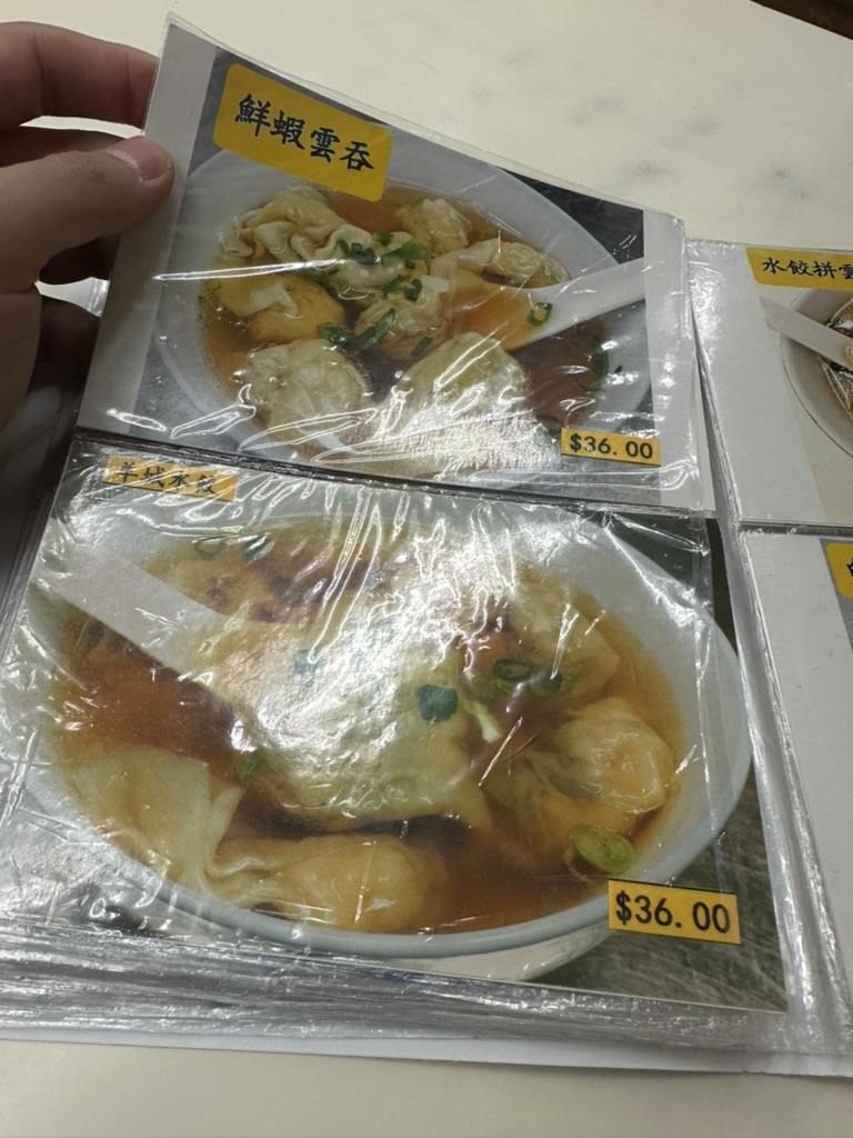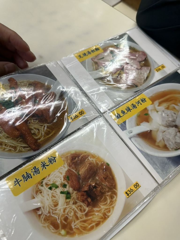 그중 이곳은 마카오의 광둥식이면서 전통적으로 완툰과 국수를 하지만 약간 특이하게도 새우알이 들어간 이 집만의 특식을 파는 곳이라고 할 수 있다. 이곳의 메뉴는 다양한 듯 보이지만 사실 국수를 기본으로 다양한 토핑을 곁들일 수 있는 구성으로 국수와 메인 메뉴를 주문하면 충분히 먹을 수 있다. 하지만 홍콩과 비슷하게 양이 조금 적지만 비싸다.