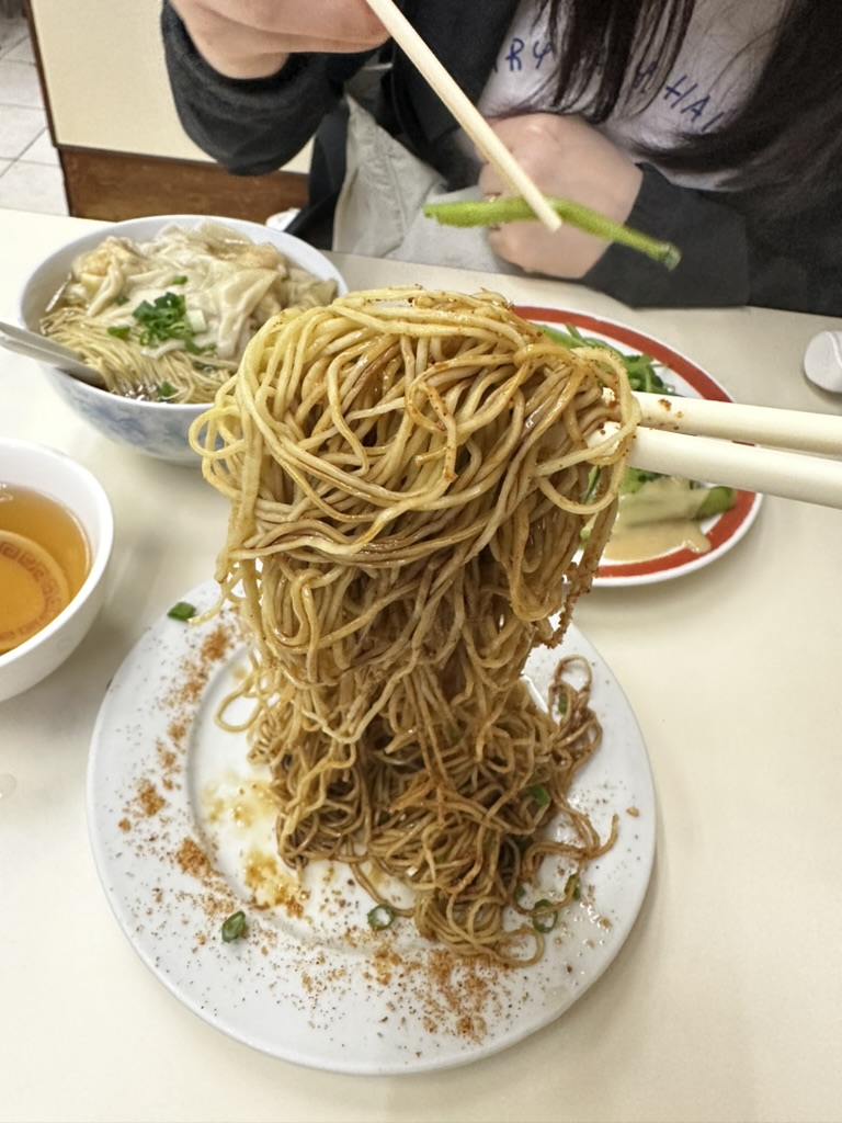 그리고 여기에 뿌려져 있는 것이 약간 후리카케와 같은 비주얼이긴 하지만 새우알이다. 새우알에 후추와 향신료를 뿌려서 국수에 버무린 느낌인데 약간 비릿한 맛은 있긴 하지만 그렇다고 대놓고 비리진 않다. 은은한 바다내음이라고 표현할 수 있을 정도이고 오히려 향신료가 강해서 그 비릿함을 느끼지 못할 수도 있다. 여기서 약간 호불호가 갈릴 수 있는 게 이 향신료가 약간은 중국스럽기도 하지만 카레느낌인 것 같기도 한 향신료라서 이 맛을 즐기지 못하면 먹기 힘들지도 모른다.