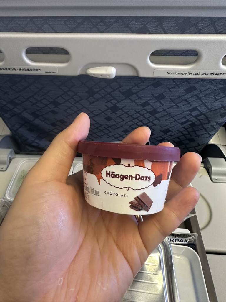 사실 맛 자체는 기내식 자체이기 때문에 정말 맛있다는 아니다. 그래도 예전 캐세이퍼시픽을 생각해 보면 훨씬 좋아진 것 같은 느낌이 든다. 특히 과일의 종류도 많고 퀄리티도 나쁘지 않고 아이스크림은 하겐다즈를 주기 때문에 밥보다는 디저트가 더 특화되어 있다고 할 수 있다. 홍콩을 갈 때는 초콜릿을 올 때는 쿠키앤크림을 받았는데... 뭐 하겐다즈야 다 맛있지 뭐.