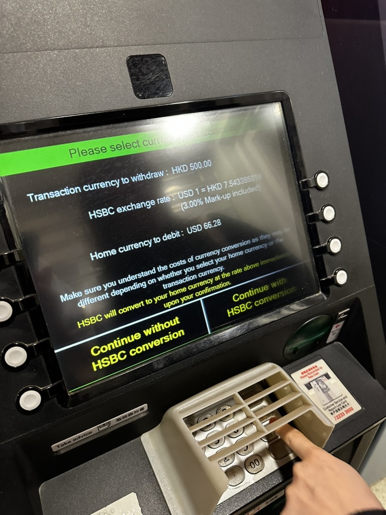 - Continue wihtout HSBC conversion을 고르면 된다. (HSBC은행을 안 거치고 바로 뽑는 거다.)