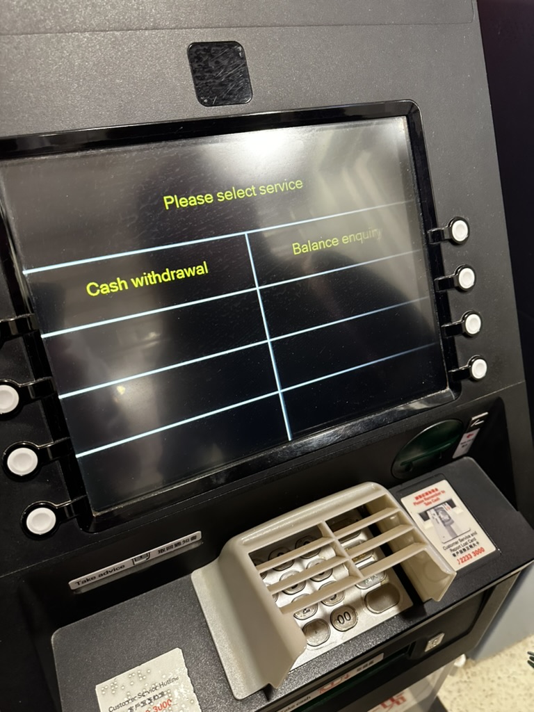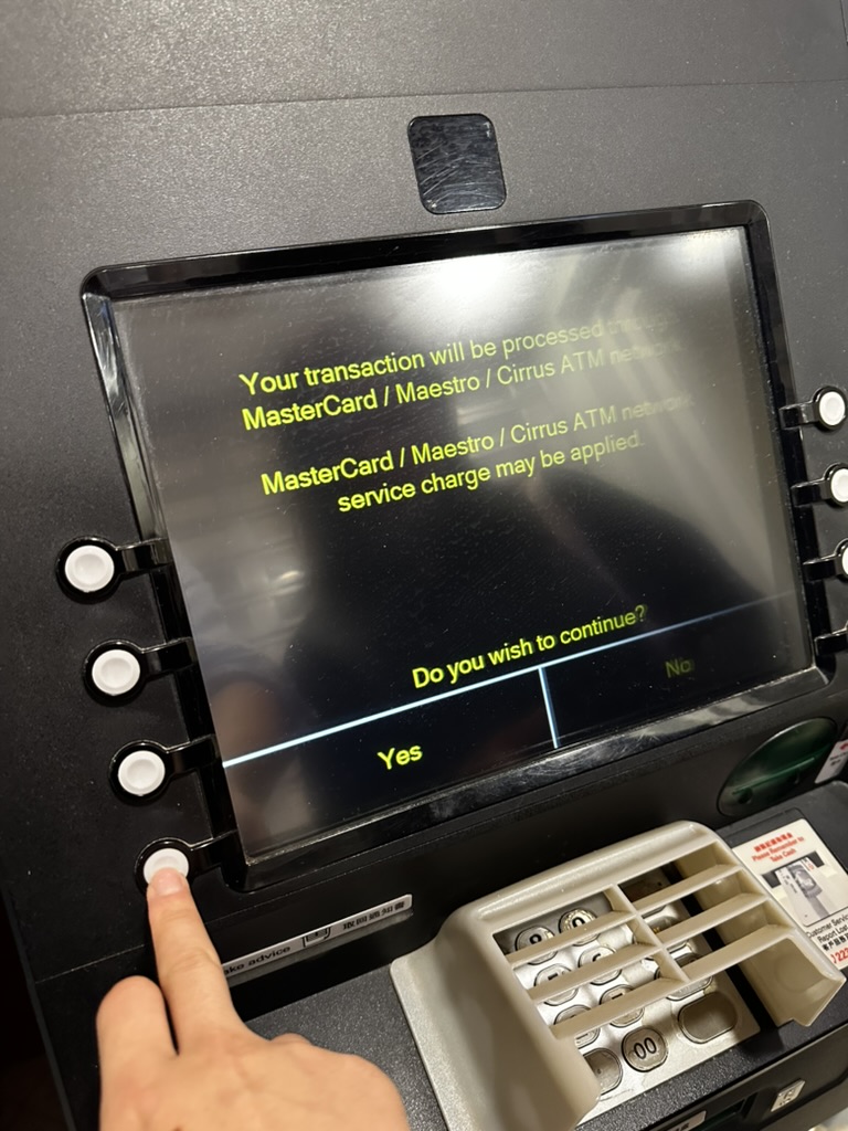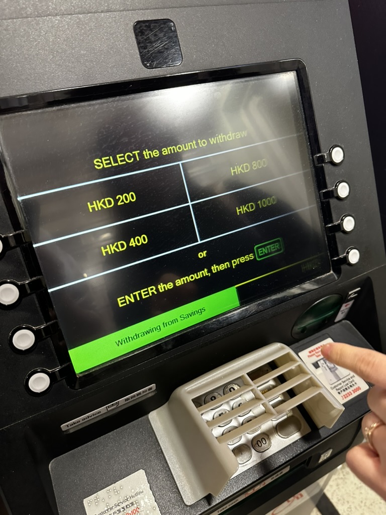 - Cash Withdrawal를 누르면 된다. (이건 터치패드가 아니라 옆에 있는 동그란 버튼을 눌러야 한다.