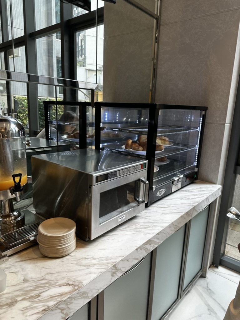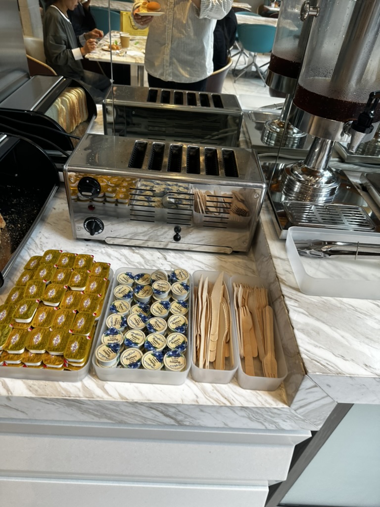 솔직히 말하면 이 냄새는 호텔 1층 엘리베이터를 타는 로비까지 이어지는데 냄새에 민감하다면 이곳은 절대 오면 안 된다고 할 수 있다. 체크인을 하는 로비는 3층에 존재하고 5층에는 짐(Gym)이 있다. 그리고 로비의 맞은편에는 조식을 먹을 수 있는 공간이 있는데 아침에 간단한 빵 3~4가지와 커피, 주스 등을 제공한다. 요리는 없고 그저 빵만 있는데.... 빵이 생각보다 맛있다.