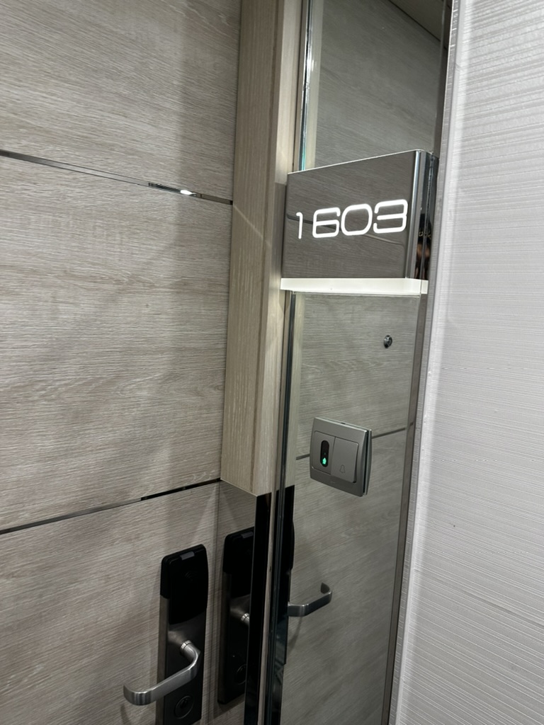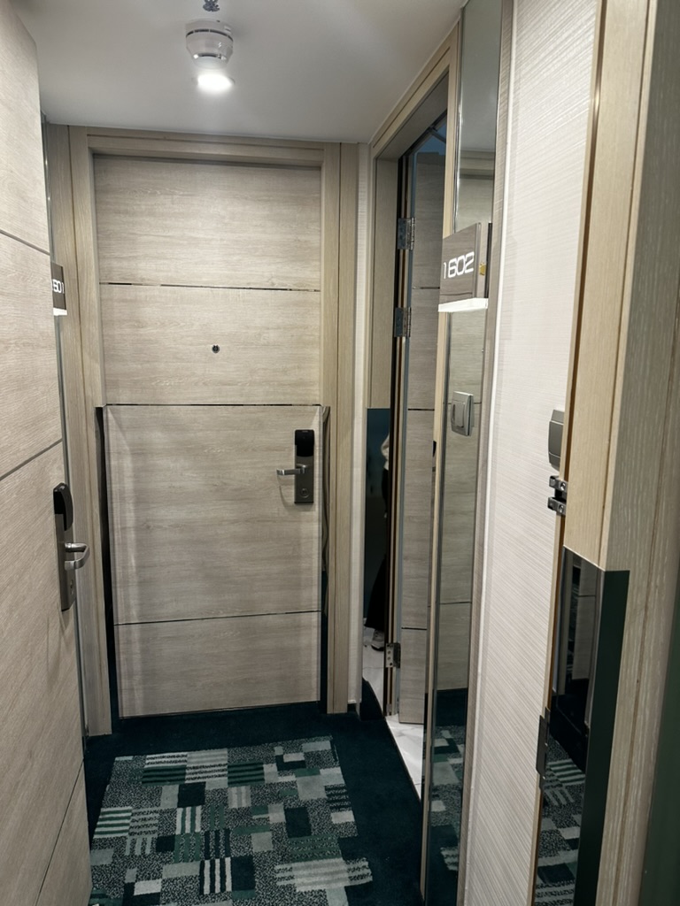 우리는 16층으로 배정을 받았는데 일반 호텔이라면 꽤나 고층에 속할 수 있겠지만 이 홍콩에서 16층은 비교적 저층 혹은 중간층 정도라고 할 수 있다. 이 호텔만 봐도 36층이기 때문에 중간층 정도라고 할 수 있다. 그런데 엘리베이터에서 내리자마자 당황한 것이 양옆으로 방이 늘어져 있지만 방으로 가기 위해서 총 3개의 문을 열었어야 했다. 일단 방으로 가는 복도의 문과 앞방과 같이 사용하는 복도의 문 그리고 방문까지 열어야 했다.