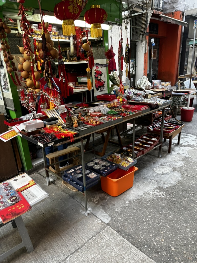 거리가 정말 짧기 때문에 휙휙 지나가면 바로 끝이 나온다. 우리는 그 위쪽으로 골목으로 돌아와 다시 캣스트릿의 앞쪽으로 오니 그곳에는 현지 사람들과 중국 쪽 관광객들에게 유명한 것 같은 절이 하나 있었다. 나중에 알게 된 거지만 Man Mo Temple이라고 해서 도교 사원으로 그 안쪽이 꽤나 멋진 조형물로 이루어져 있다고 한다. 우리는... 사실 이런 사원을 잘 다니긴 하지만 들어가 보진 않았다.