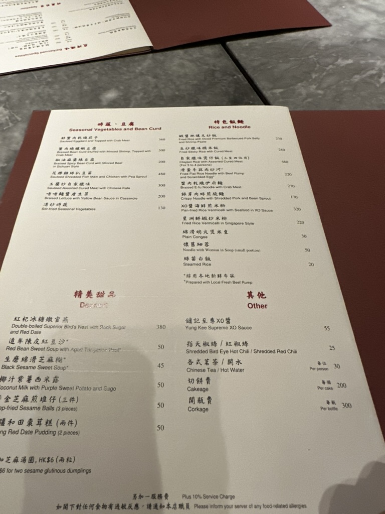 정말 아쉬운 것은... 술을 마시지 못했다는 점이다. 이번 홍콩여행에서 소홍주 등 황주를 먹어보기 위해서 노력을 했으나 가성비와 맛을 함께 가져갈 수 있는 황주를 찾지 못했다. 이곳의 경우에는 술 메뉴가 꽤나 나쁘지 않고 와인들도 있어서 술을 시키는 사람들이 꽤나 많았는데 이 게 나쁘지 않은 딜이어서 사람이 많다면 한 번쯤 도전해 볼 수 있으면 좋을 것 같다.