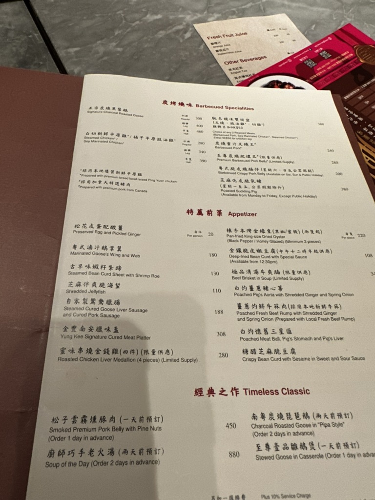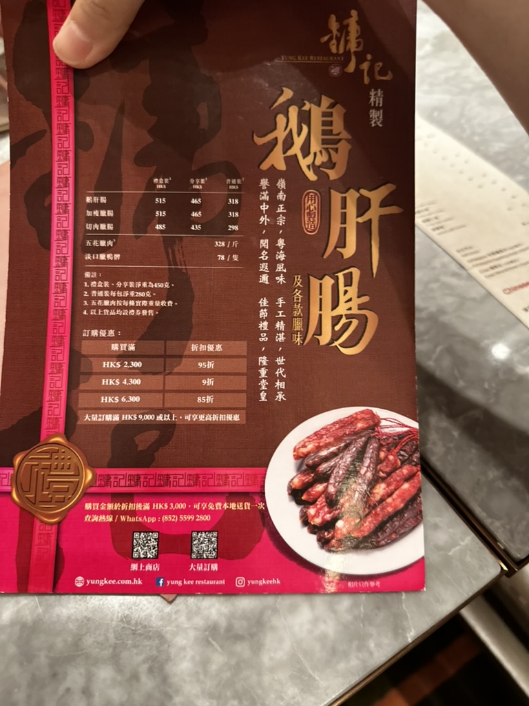 사실 이 Yung Kee Restaurant는 거위 구이의 원조 격이라고 할 수 있다. 내가 알기로는 구룡반도의 작은 로스트 구이가게로 시작해서 이 광둥식 거위 구이를 지금의 홍콩의 대표 메뉴로 올려놓은 가게라고 할 수 있다. 예전만큼 원조의 위상이 강하지 않고 이제는 더 맛있고 가성비 있는 음식점들이 있지만 그래도 처음 먹는 곳이면 원조격인 곳으로 가야 하지 않겠냐는 생각이 있어서 이곳을 방문했다.