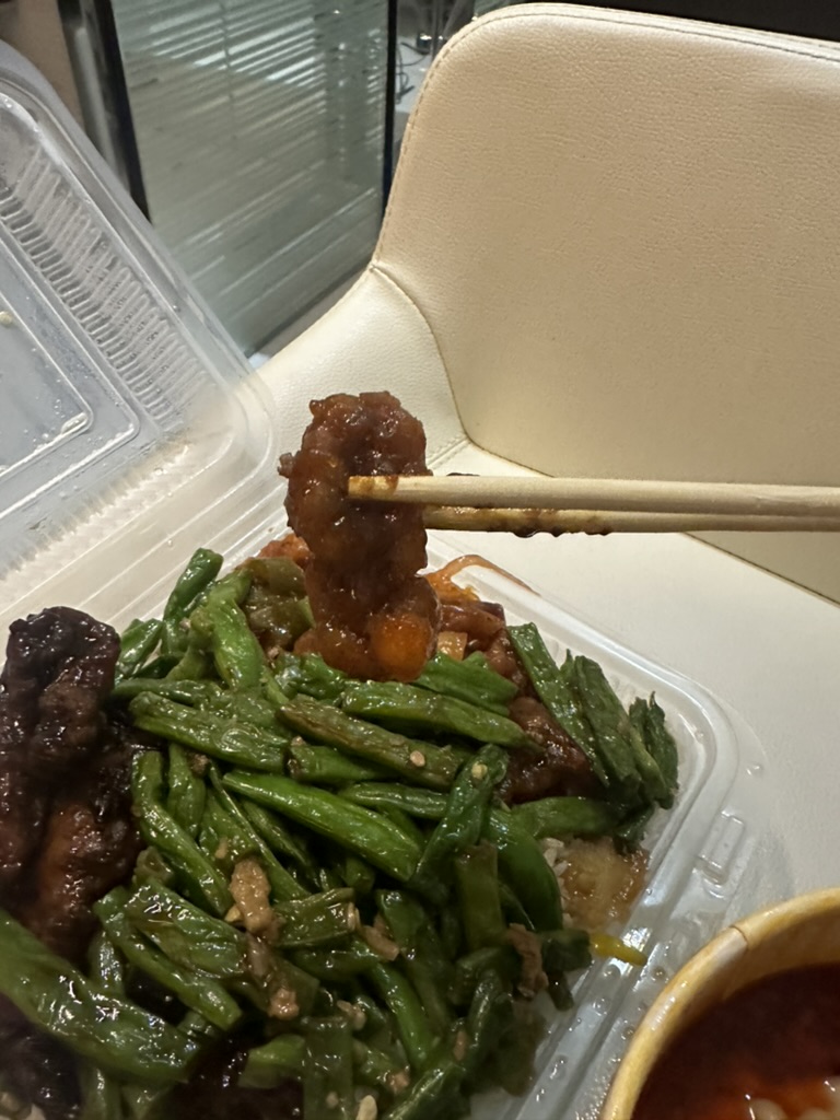 몽골리안 비프는 너무 양념이 강하고 달고, 오렌지 치킨은 튀김이라고 하기에는 엄청나게 눅눅하고 양념에 절여져 있다. 그리고 빈은 볶은 지 너무 오래돼서 그 프래쉬 함을 잃어버렸지만... 맛있다. ㅋㅋㅋ 거기에 완투는 시큼하고 마라향이 나는 약간 똠양꿍 같은 느낌이고 완툰은 냄새도 나지 않고 꽤나 맛이 있었다.