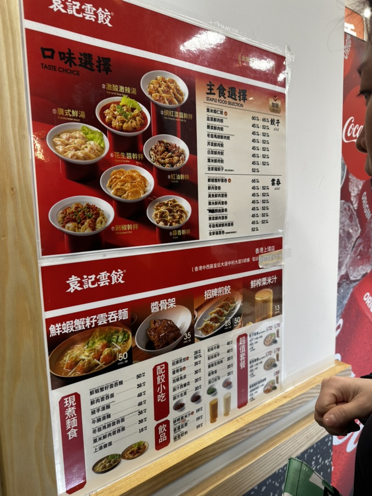 그리고 이곳은 완준의 종류를 고르고 국물의 종류를 고르고 완툰의 개수를 고르면 된다. 조금 영어가 안 되는 직원들이지만 꽤나 친절해서 손짓 발짓으로 다 설명을 해줘서 주문을 할 수 있었다. 가격은 약간 비싸긴 하지만 한 그릇에 12,000원 정도로 완툰을 10~12개 먹을 수 있기 때문에 꽤나 가성비라고 할 수 있다. 2명이 완툰 한 그릇에 밥과 메뉴 3개로 총 2만 원이라면 홍콩에서는 미친 가격이라고 할 수 있다. 사실 요즘은 한국에서도 이렇게 먹기가 쉽지는 않다.