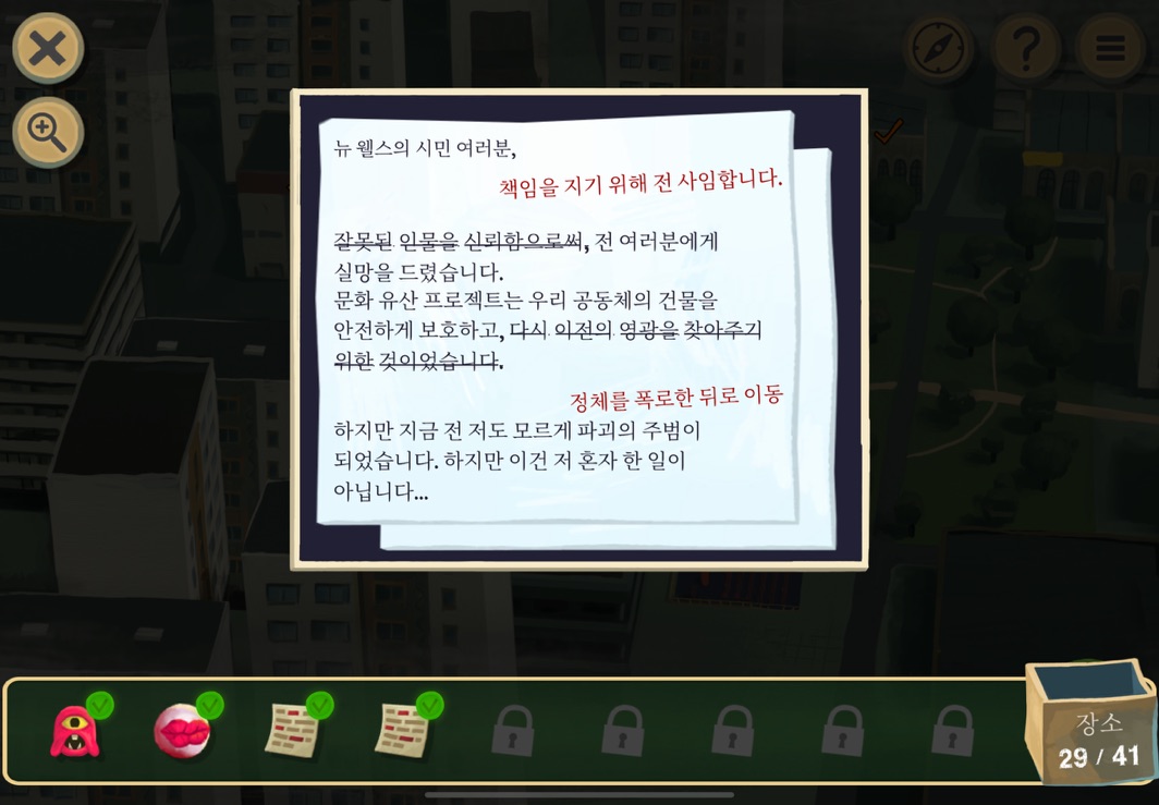 우선 공략이긴 하지만 태블릿, PC, 모바일마다 다르기도 하고 거기에 버전이 몇이냐에 따라서 또 뷰와 약간의 워딩이 다르기 때문에 공략을 볼 때 완전히 똑같지 않더라고 일단 뜻을 알고 가면 도움이 된다. 그리고 너무 많은 힌트 이용은 게임의 재미를 떨어뜨리니 조심하시길.