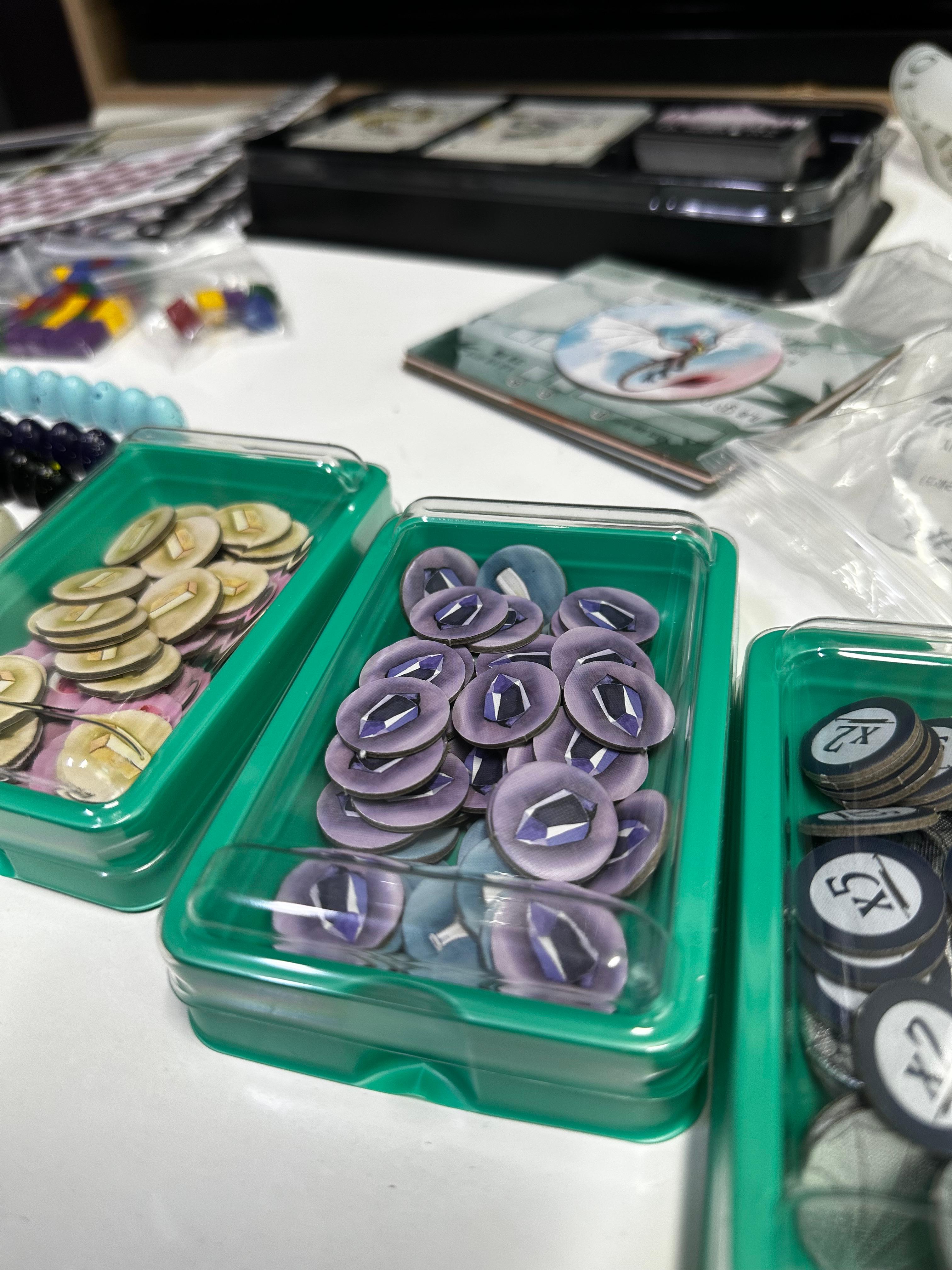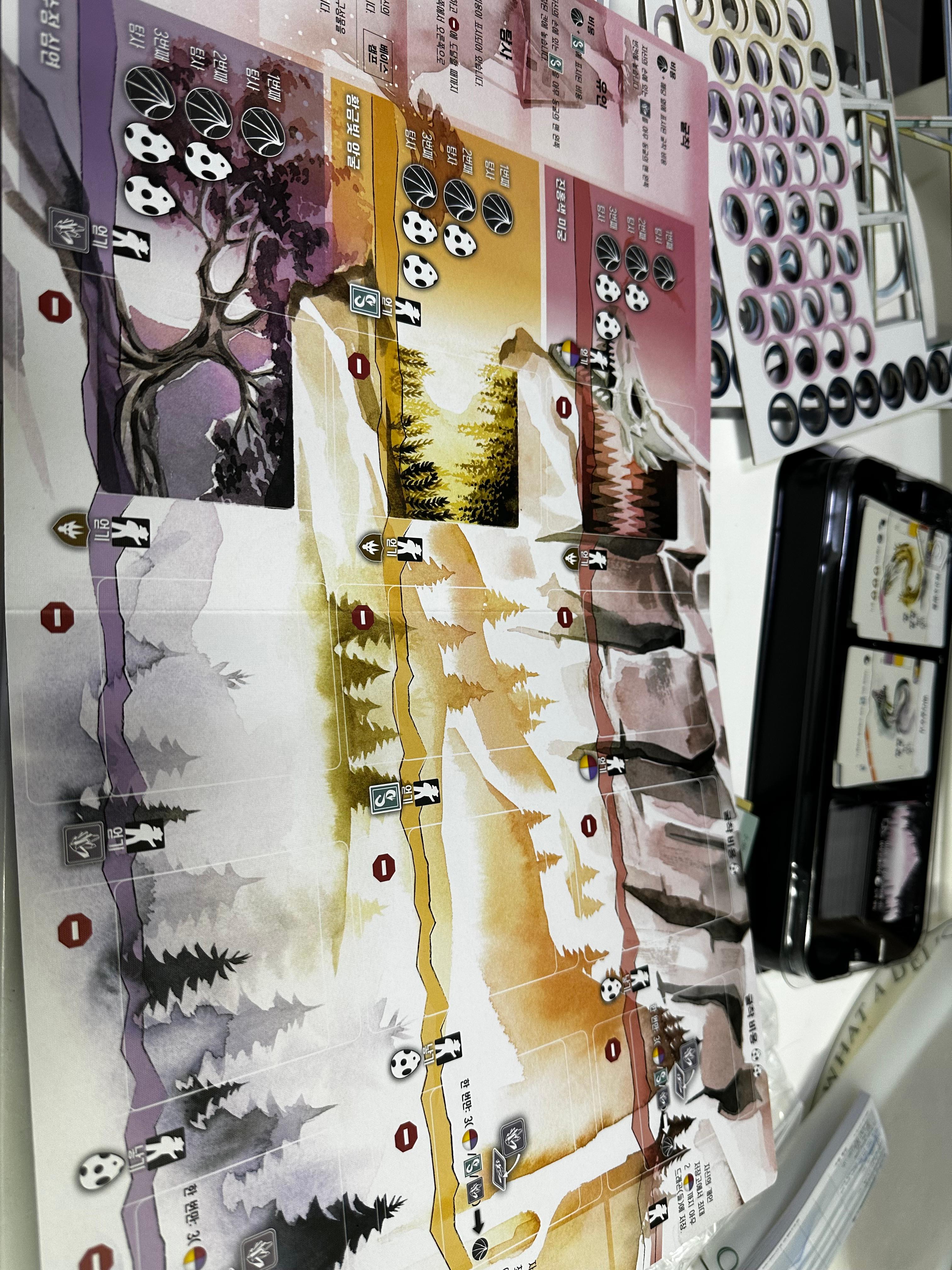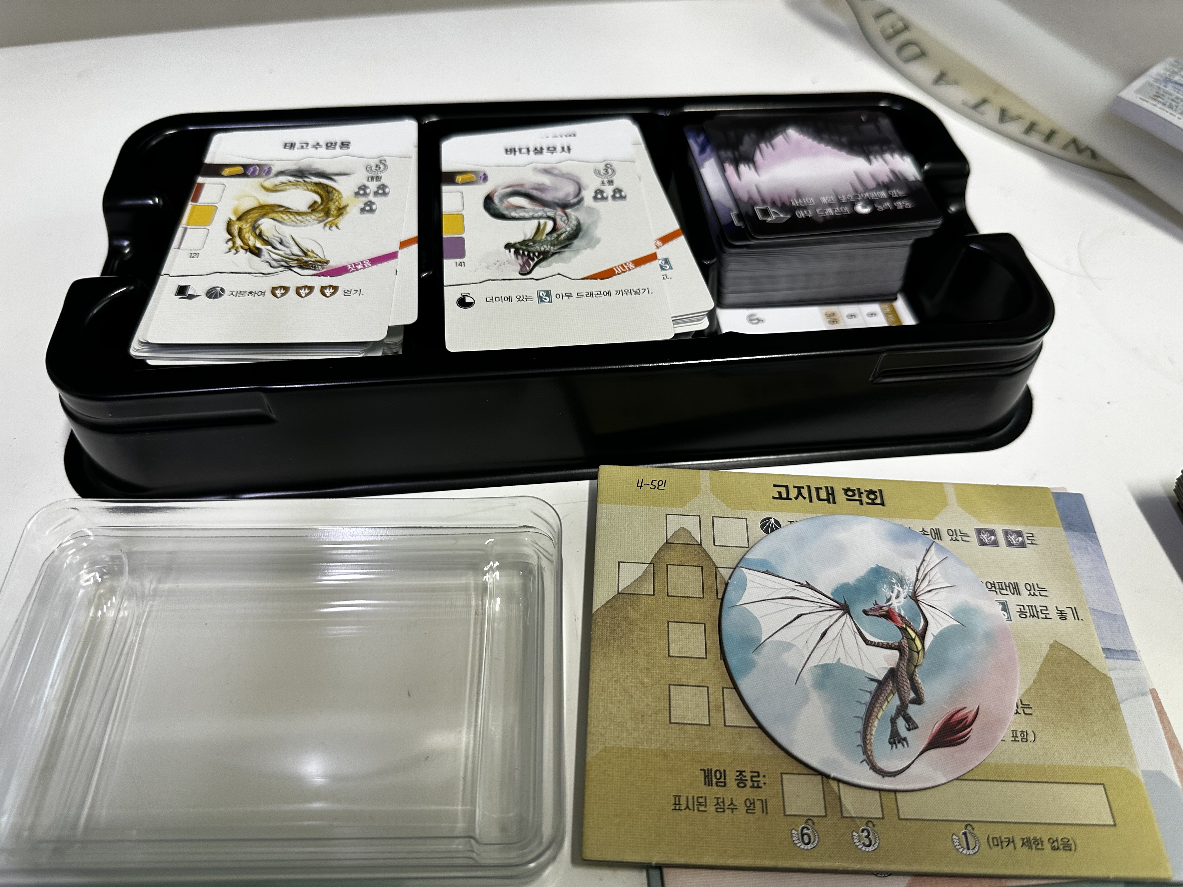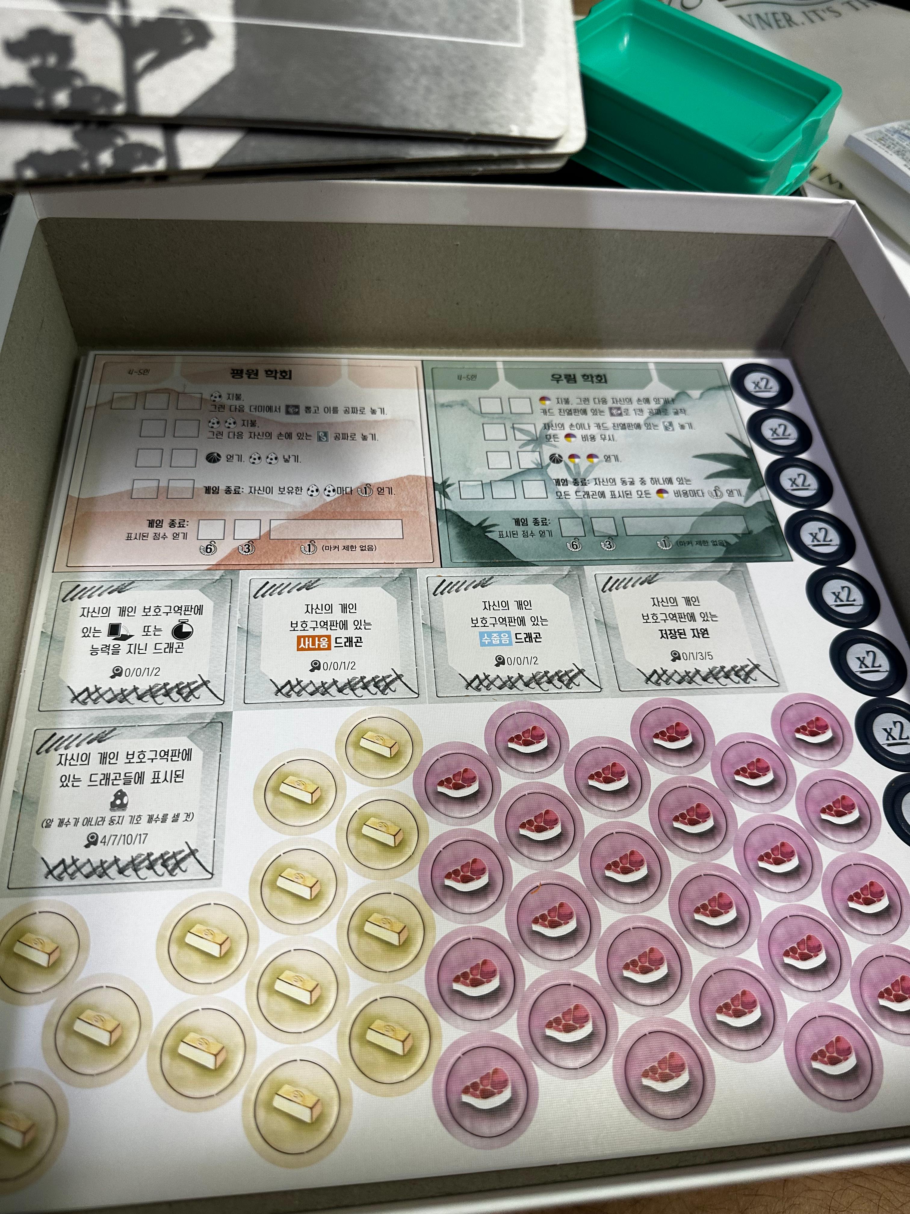 그래도 트레이와 컴포의 퀄리티가 꽤나 좋아서 확실히 윙스팬의 저력을 알 수 있었다. 특히 알들이... 너무 이쁘고 동전 컴포도 좋아서 나쁘지 않았는데 생각에는 3D 프린터로 조금 더 멋진 알을 뽑아서 플레이하면 더 맛있겠다는 생각이 들었다. 그리고 생각보다 카드가 많이 없어서 조금 놀랐다. 확실히 이 용에 대한 조합을 다르게 하면 확장팩이 무한대가 될 수 있는 이런 게임에서는 카드를 조금만 처음에 주는 게 좋지.