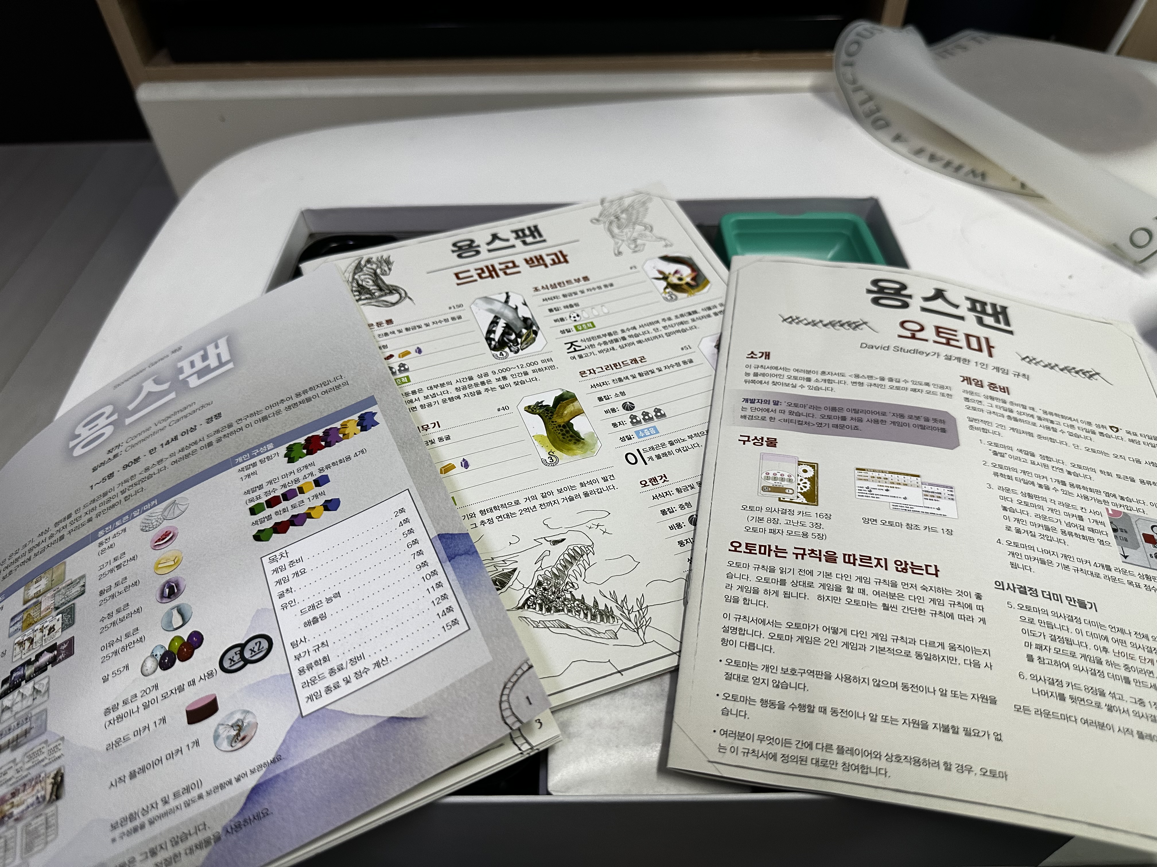 윙스팬이 나왔을 때 메커니즘은 쉬우나 플레이성이 좋은 게임이 나와서 아내와 구매를 해서 즐겨볼까 했다. 하지만 문제는 아내에게 있는 조류공포증은 이 게임을 포기하게 만들었다. 하지만 게임이 나오고 나서 얼마 후 이 윙스팬의 일러스트와 게임성을 더 추가한 용스팬이 나온다는 소식이 들렸고 작년 2024년에 출시를 했다. 물론 한국에는 그보다 조금 늦은 2025년에 출시를 했지만 말이다.