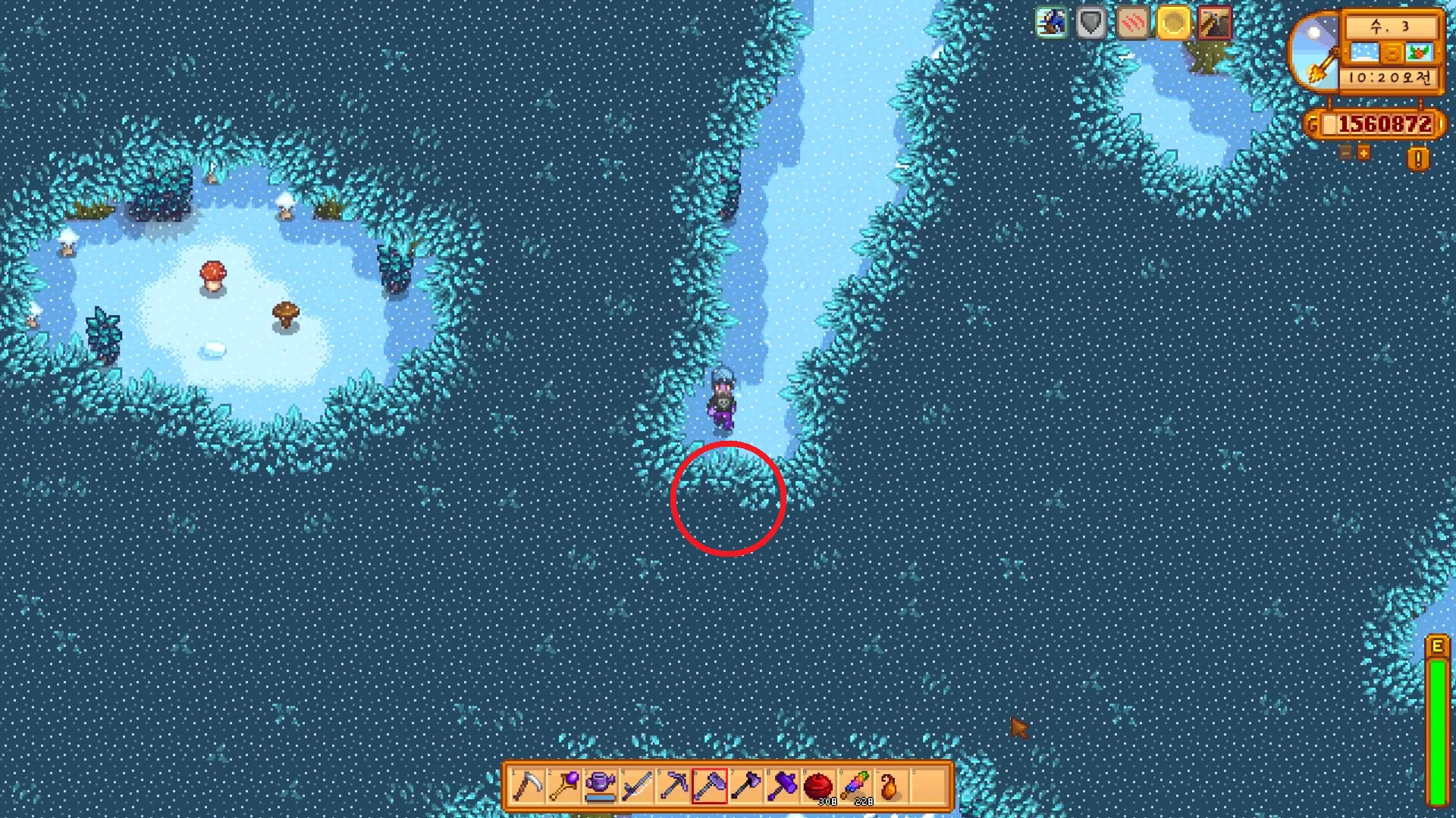 첫 번째는 이 장소로 오자마자 있는 버섯 사이로 들어가시면 됩니다.