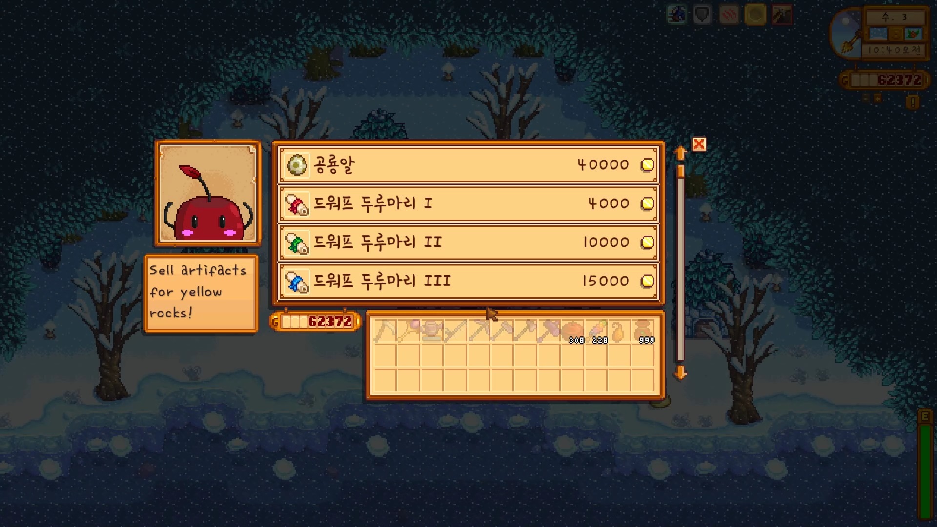 3번째 오두막에서는 아티팩트를 팝니다. ㅎㄷㄷ