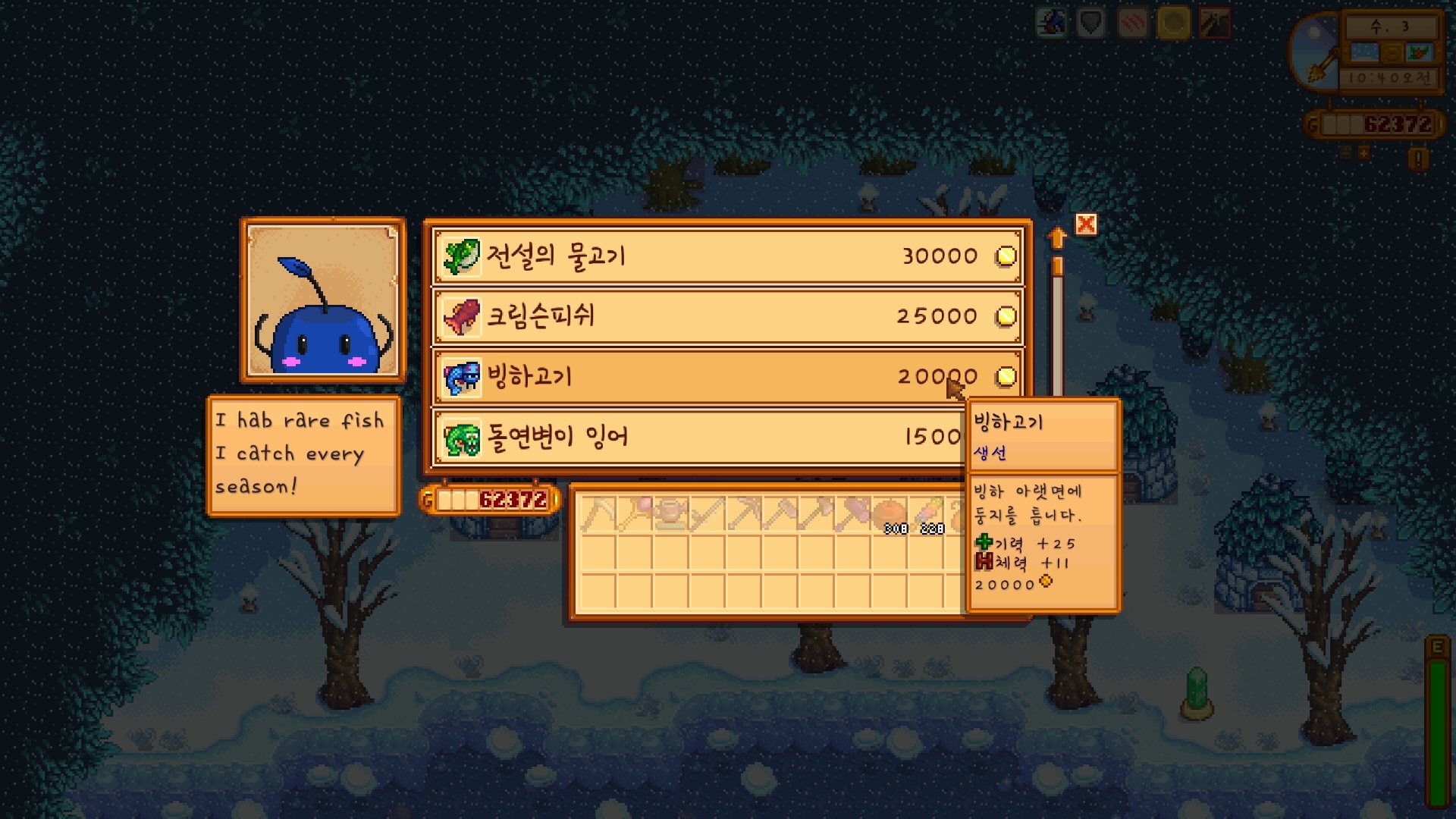 그리고 2번째 오두막에서는 무려 희귀 물고기들을 팝니다.
