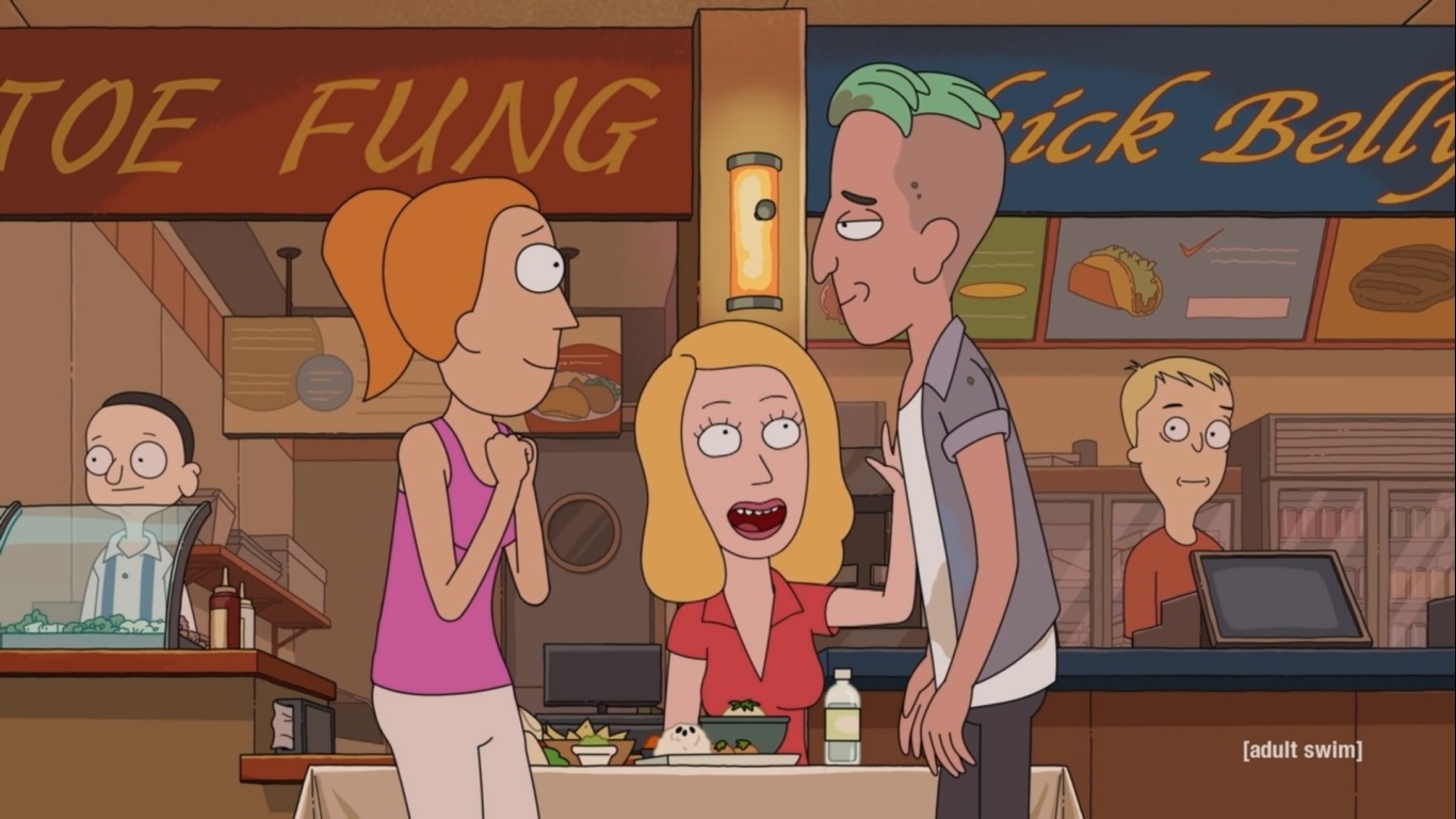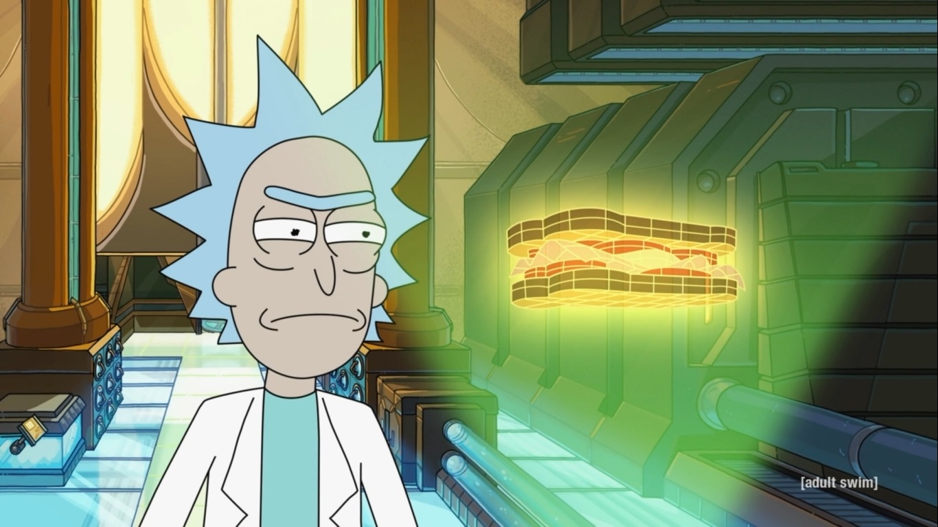 장면은 바뀌어 Rick이 어딘가의 행성으로 향하는 것을 보여줍니다.