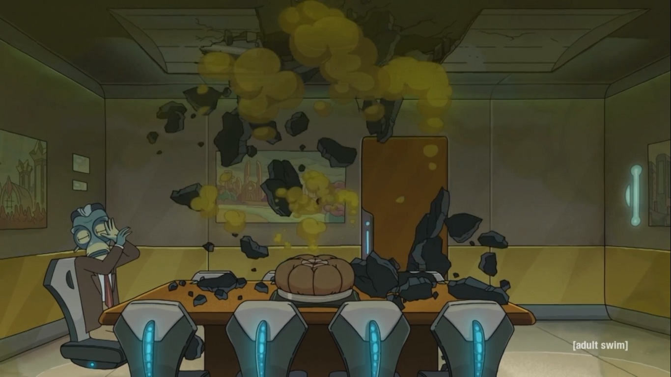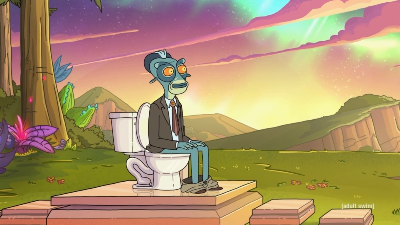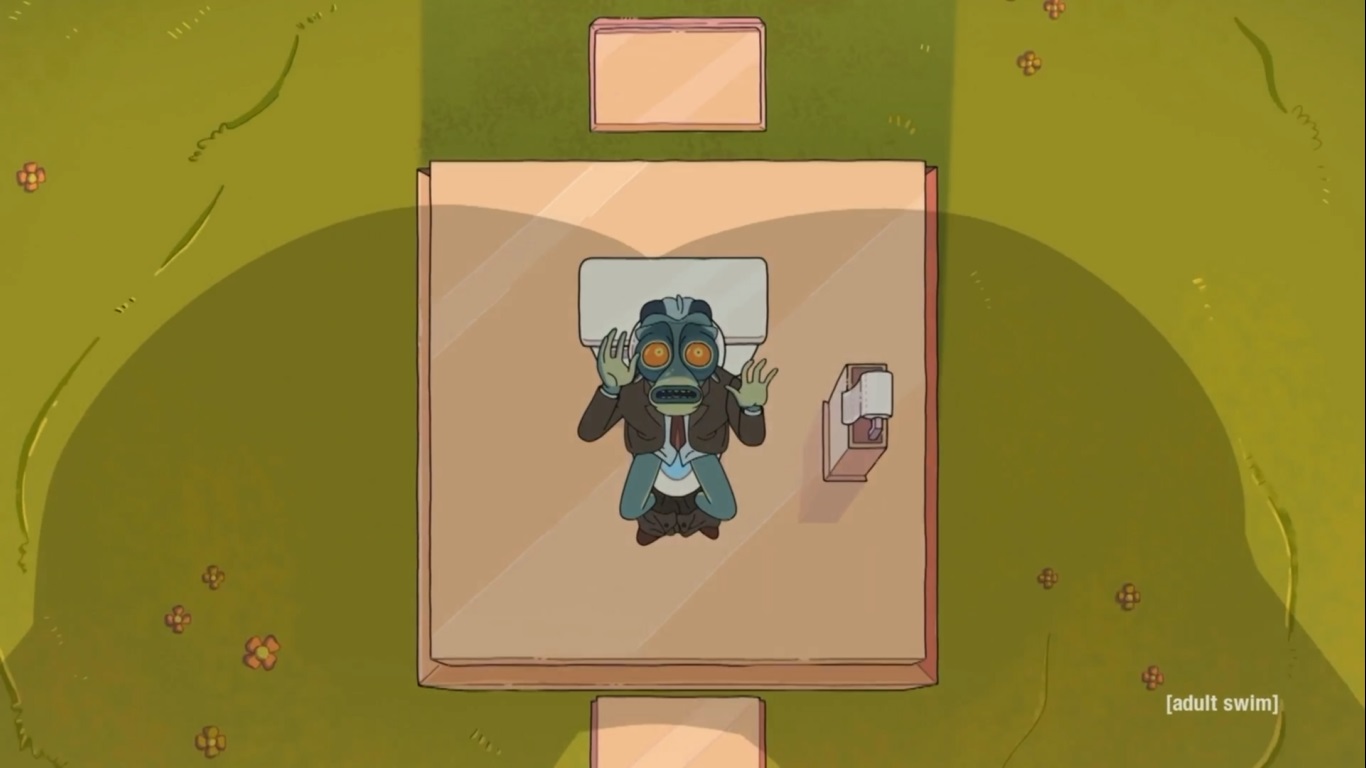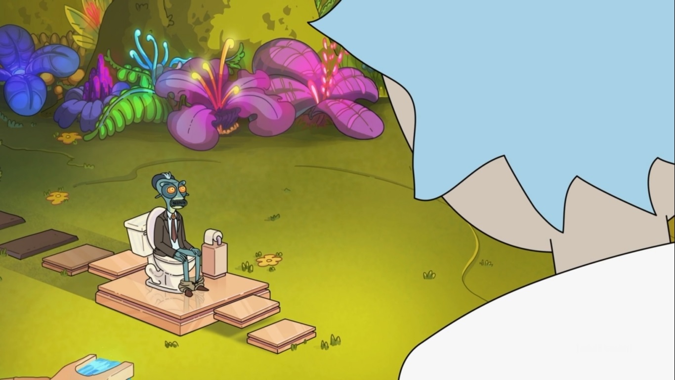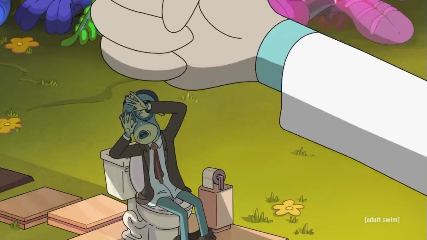 Oh, I uh, pooped on a really awesome toilet I found -- oh, ow, ow (Rick이 때리는 부분)