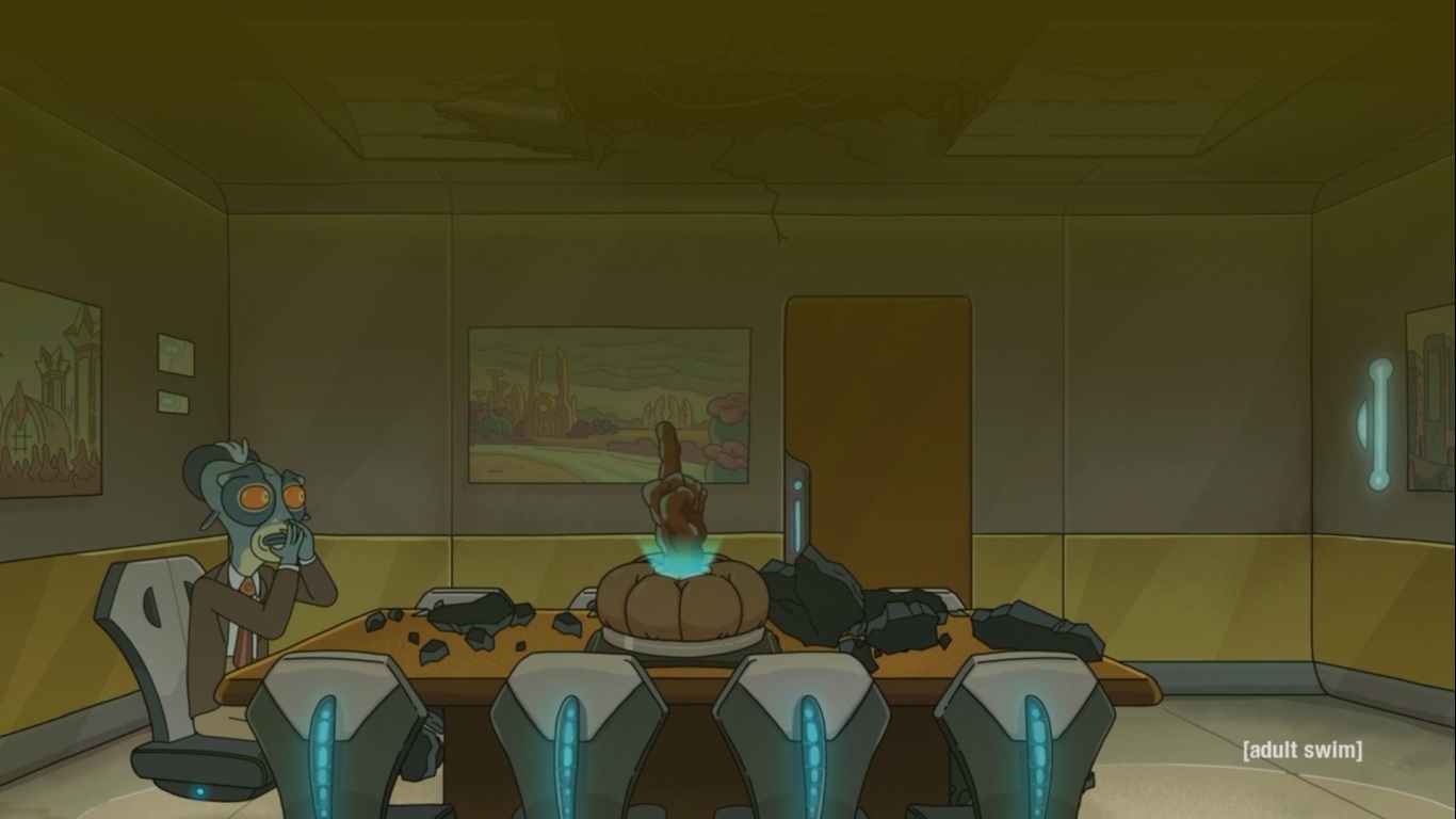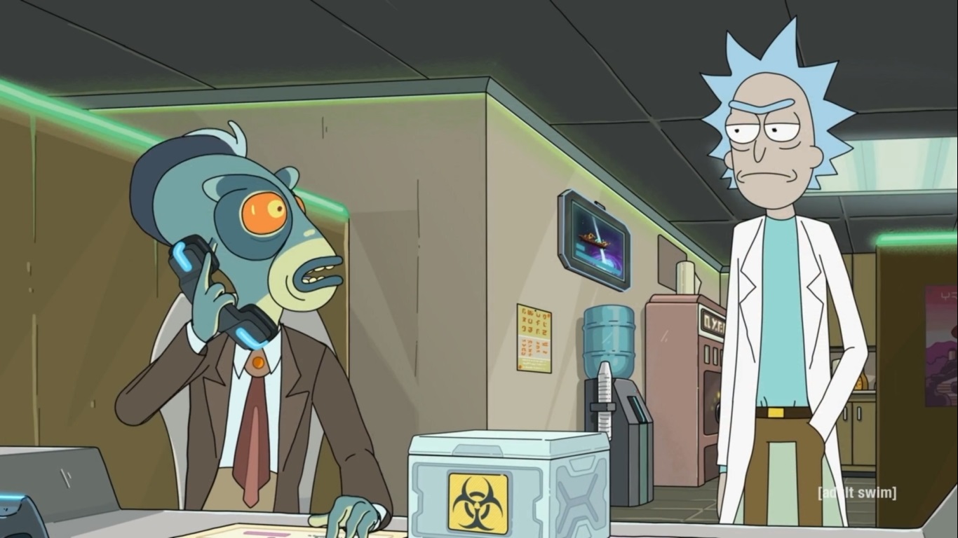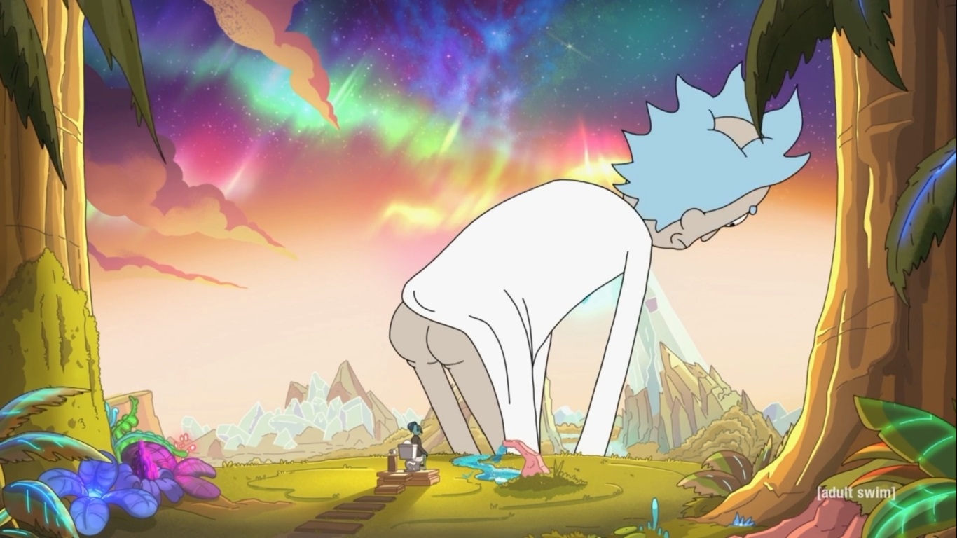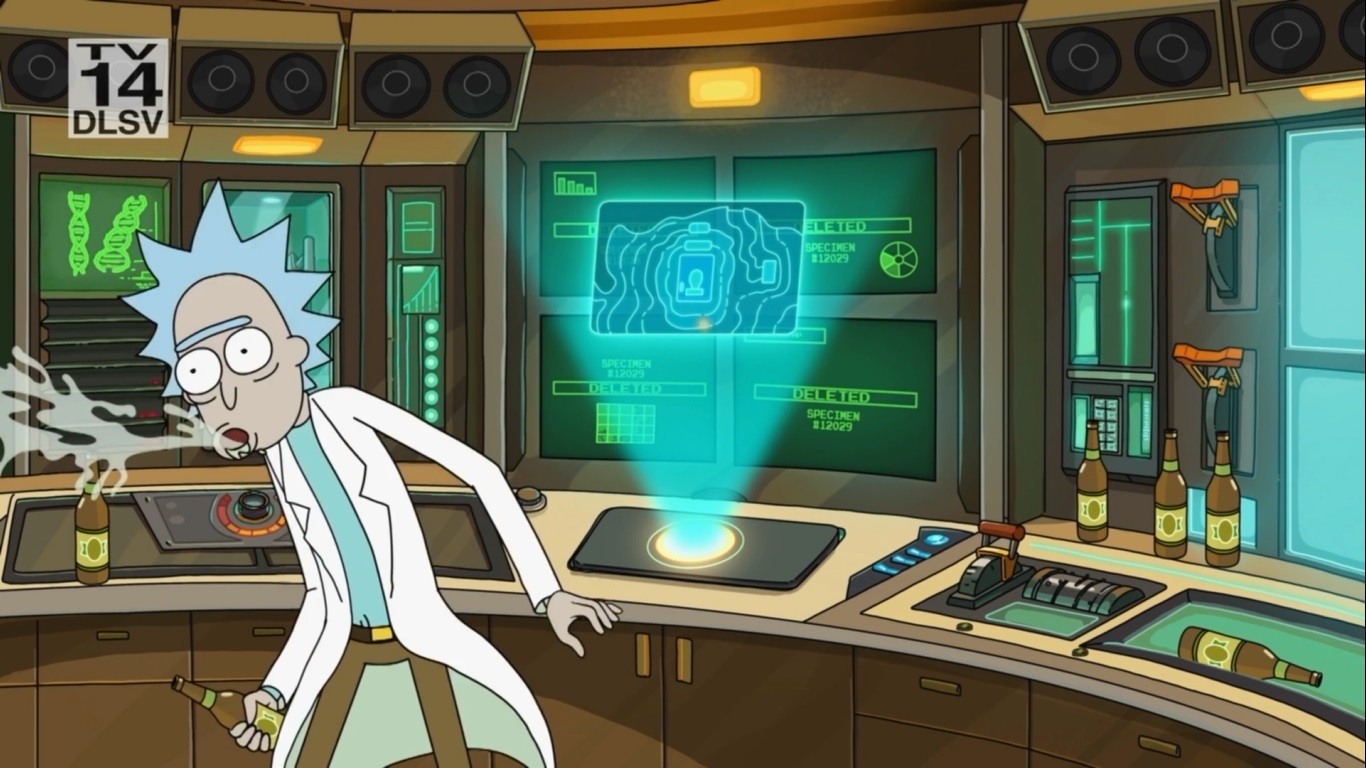 다시 자신의 화장실 행성으로 돌아간 Rick은 맥주를 마시다가