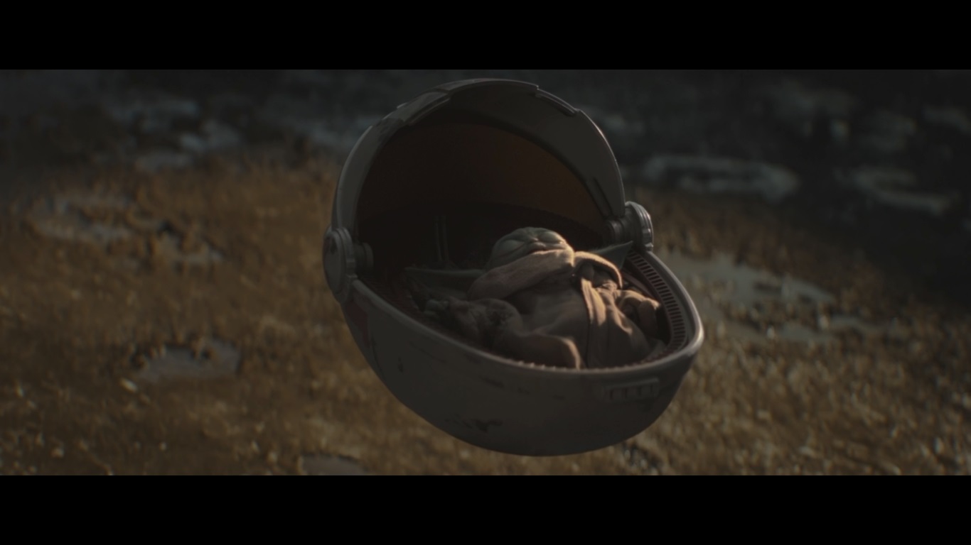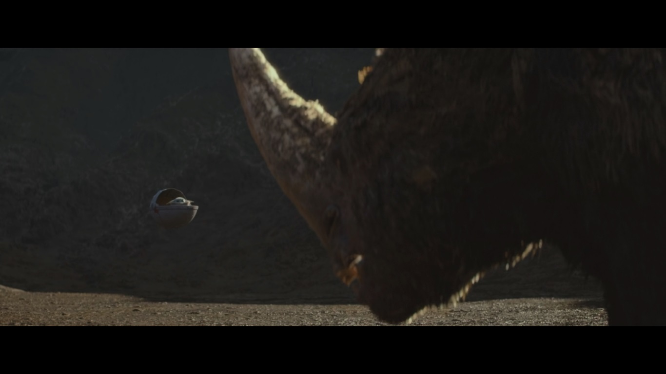 어린 요다를 보고 돌진하지만 The Mandalorian이 저지합니다.