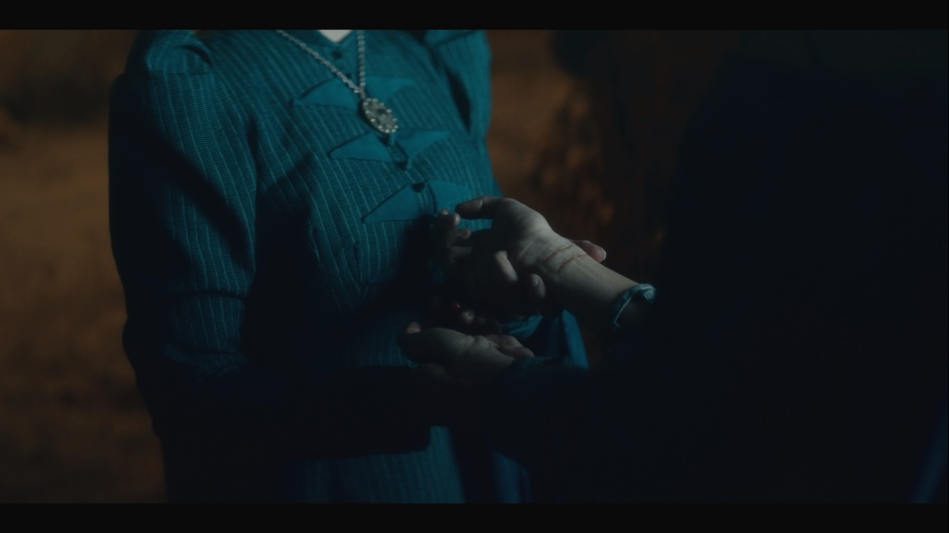 Tissaia가 Yennefer를 잡고 이야기합니다.