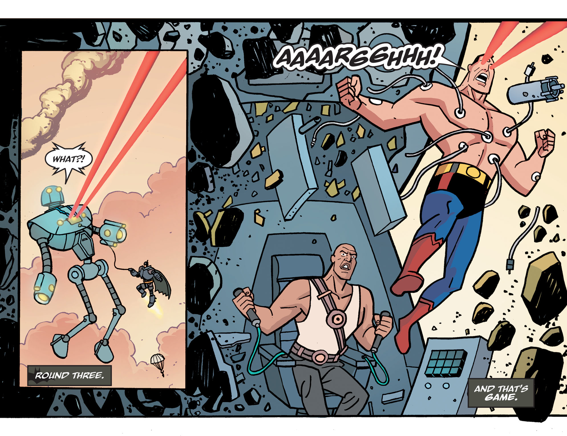 그 안에서 Superman이 로봇을 부시며 나오게 됩니다.