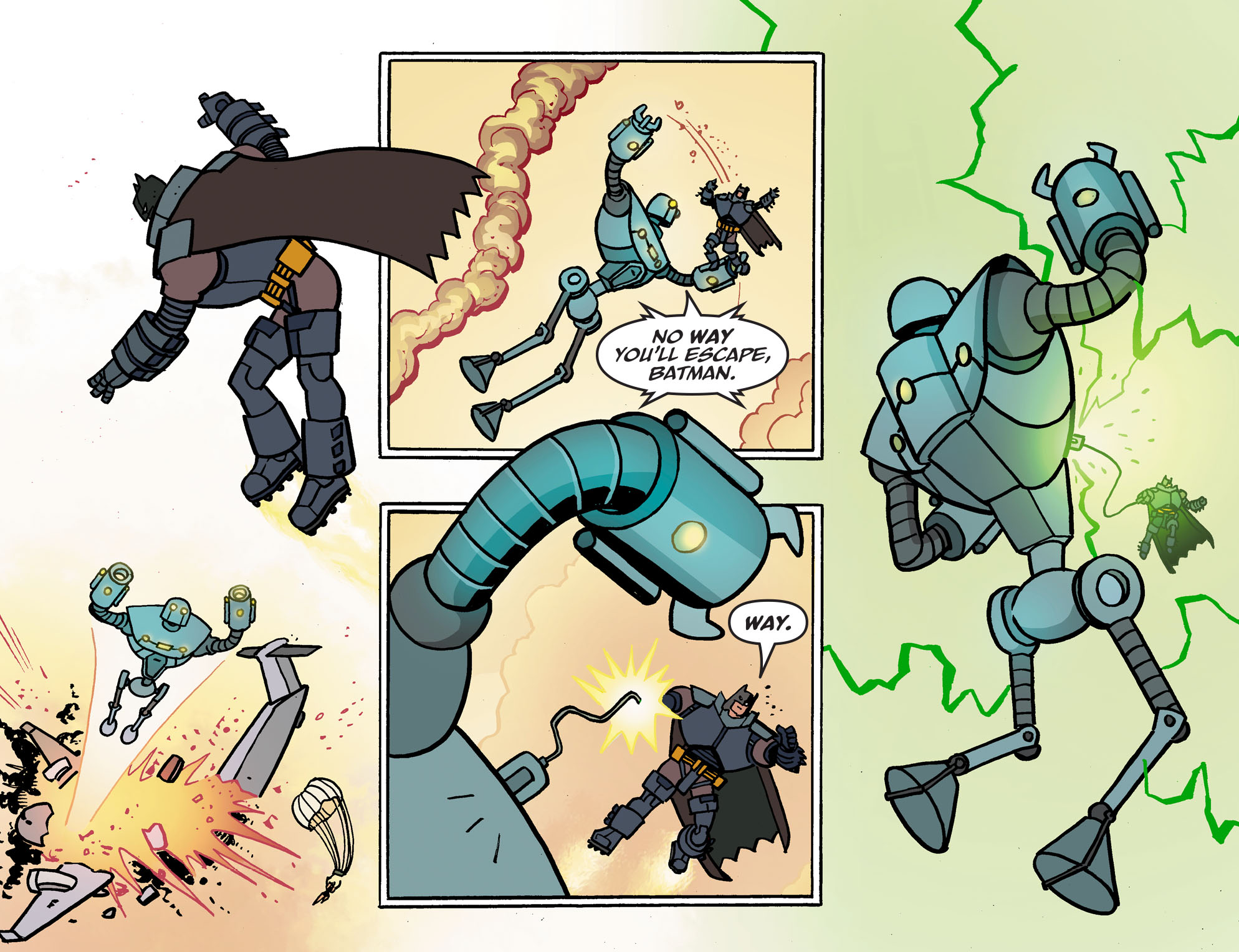 Batman이 이상하게 느껴 초록색(!!!?)의 에너지가 담긴 것을 로봇에게 쏘자....