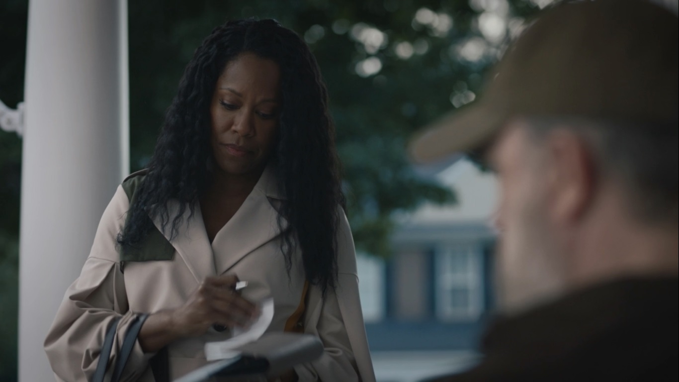 1) He lives in an affluent suburb with large houses.
