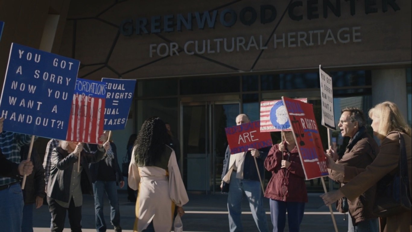 이곳에서는 Tulsa에서 있었던 참극의 생존자들을 찾아내고 그 찾아낸 사람들은 세금을 내지 않게 됩니다.