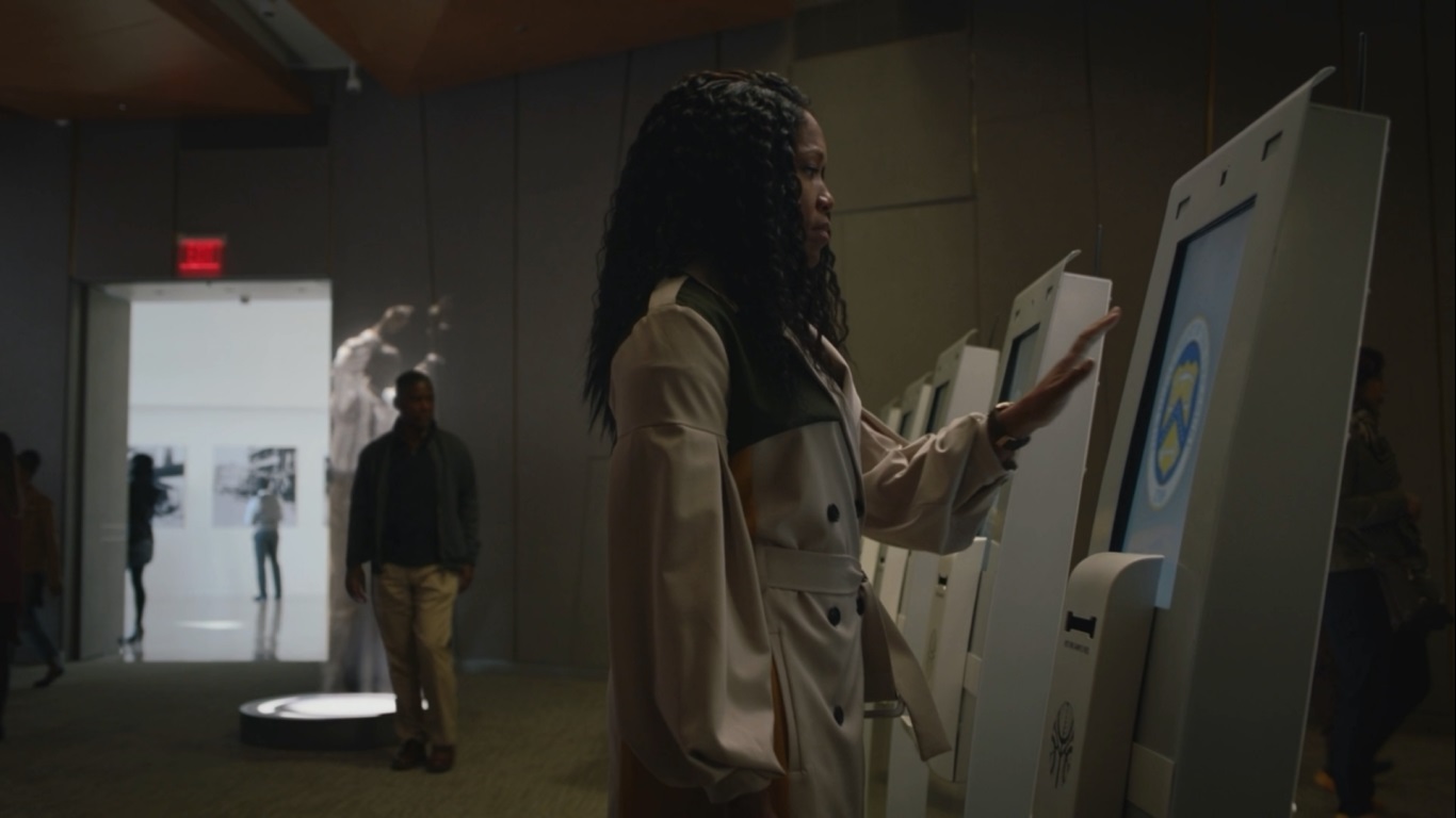 Sister Night는 패널 앞에 가서 머그에서 DNA를 체크하여 기계에 넣습니다.