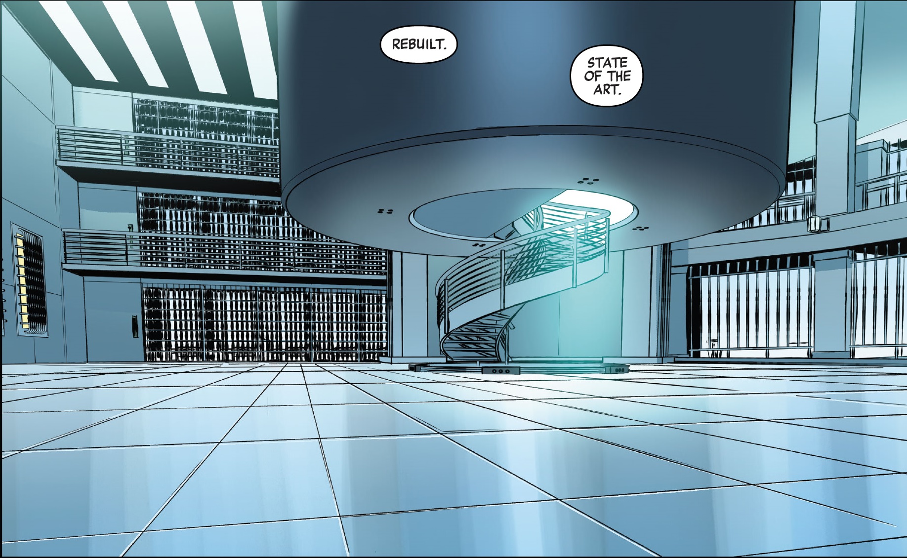 만화에서는 경찰생활 중에 폭발 때문에 오른팔을 잃고 Stark에게 로봇 팔을 받습니다.