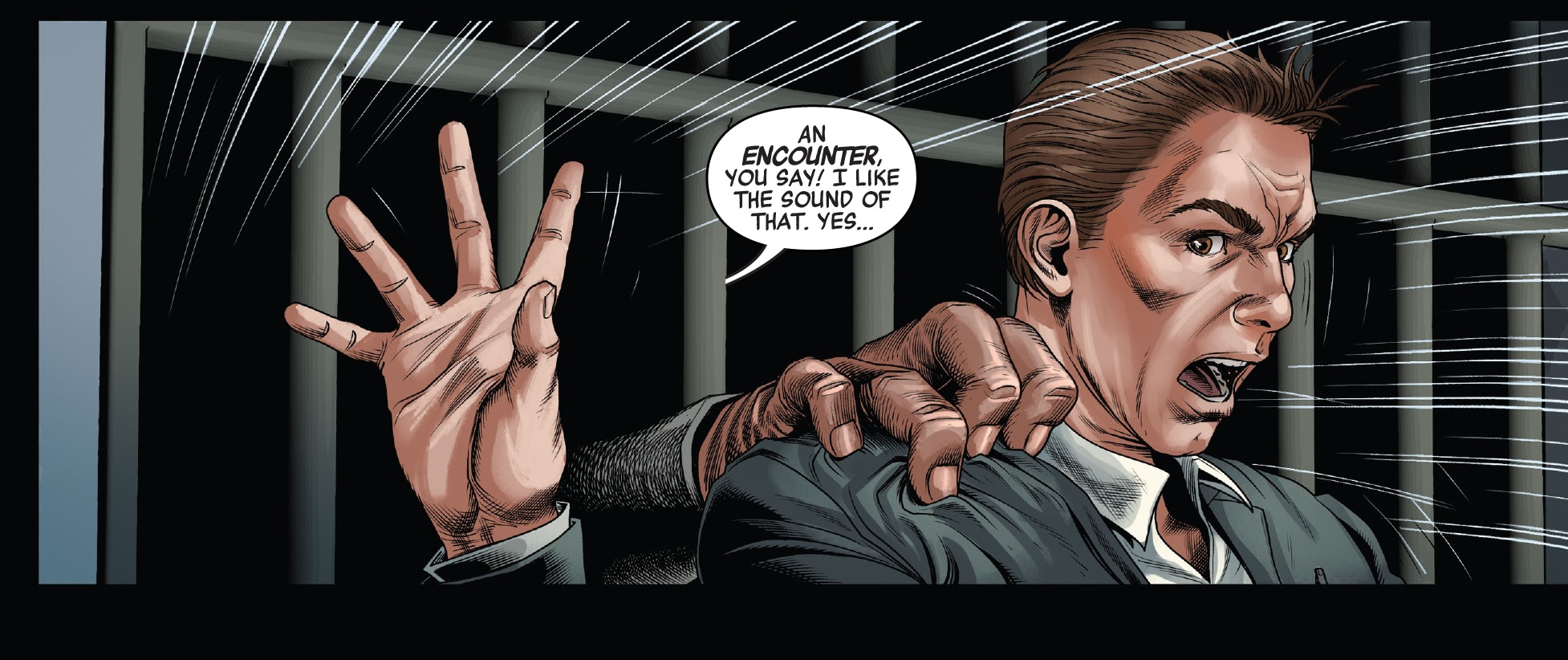 갑자기 뒤에 있던 감옥에서 누군가 손을 뻗어서 John을 잡습니다.