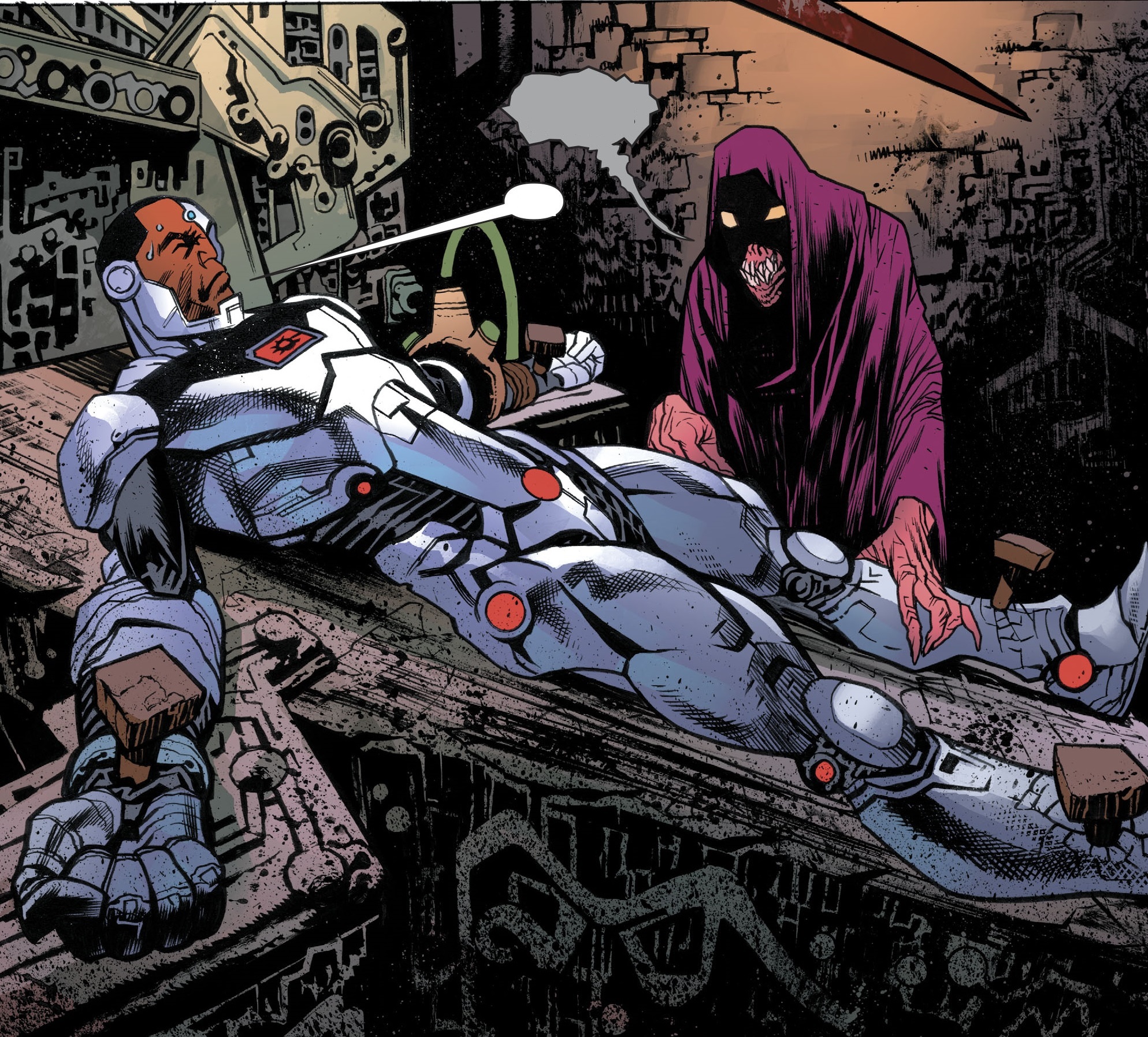 Batman이 Cybog의 회로에 추적장치를 달았고 Apokoliptian의 기술로 덮여있는 Cybog를 추적하지 않는 것 자체가 무책임한 것이라고 이야기합니다.