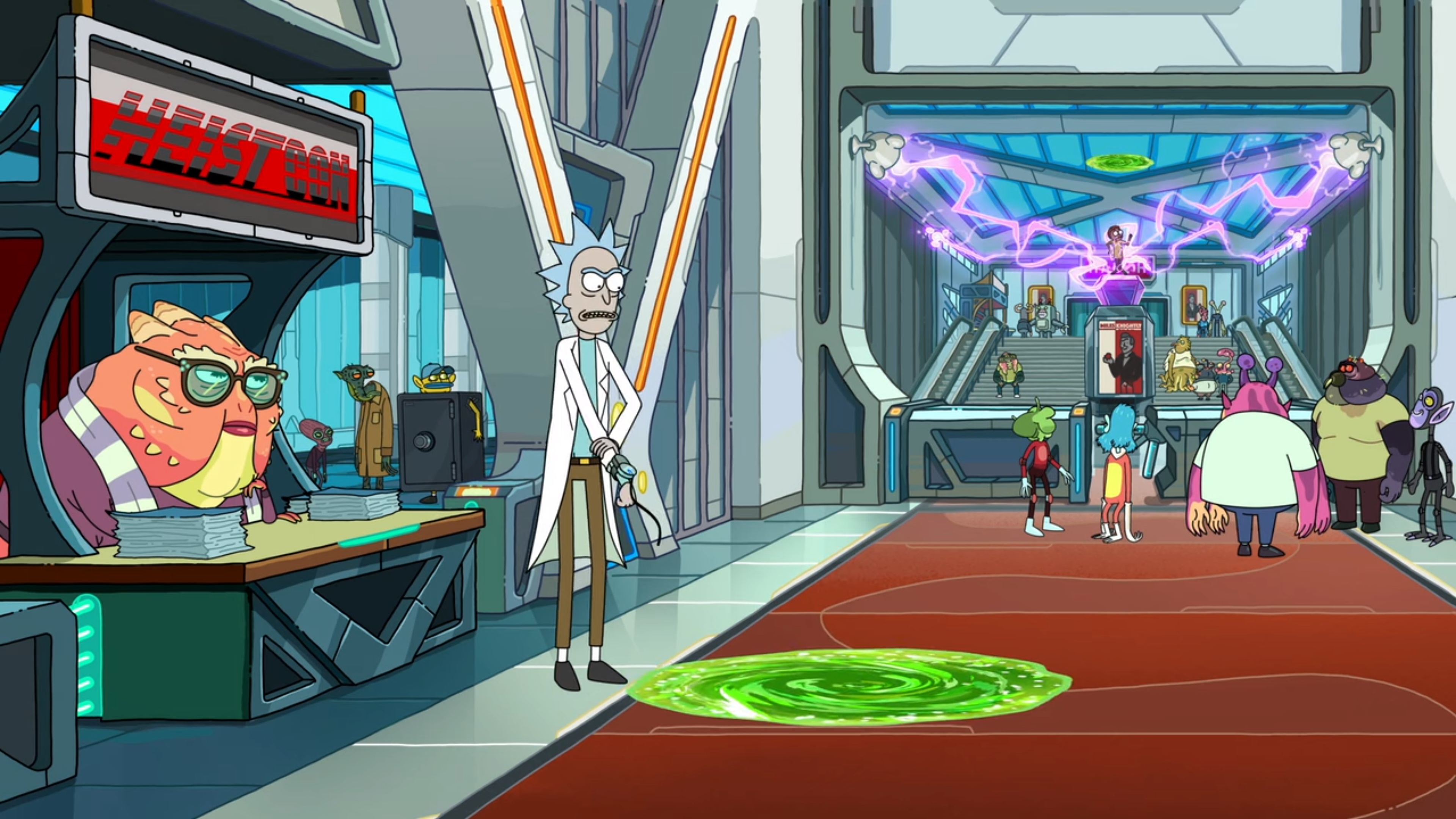 그러자 Rick은 포탈을 통해서 들어가면 되지 않냐고 하고는 Morty를 포탈을 태워서 안으로 들여보냅니다.